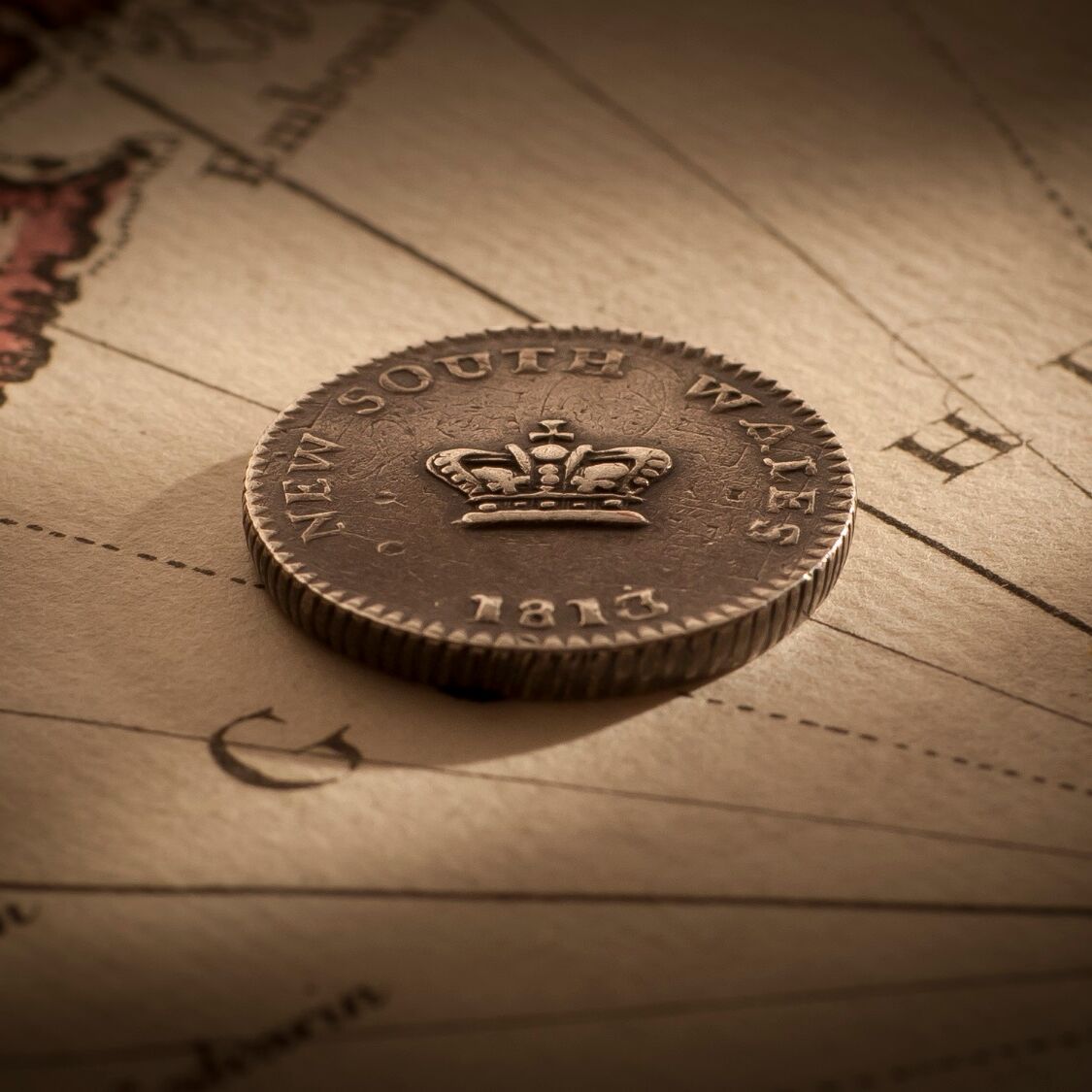 Governor Lachlan Macquarie enlisted the services of emancipated convict, William Henshall, to cut a hole in 40,000 Spanish Silver Dollars, creating two coins out of one.
