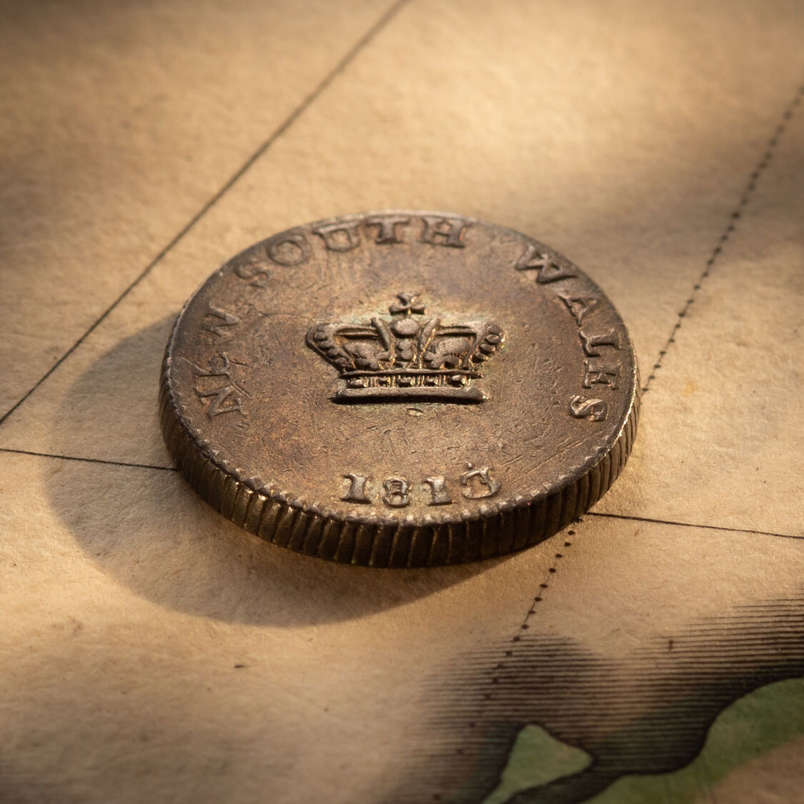 Governor Lachlan Macquarie enlisted the services of emancipated convict, William Henshall, to cut a hole in 40,000 Spanish Silver Dollars, creating two coins out of one.