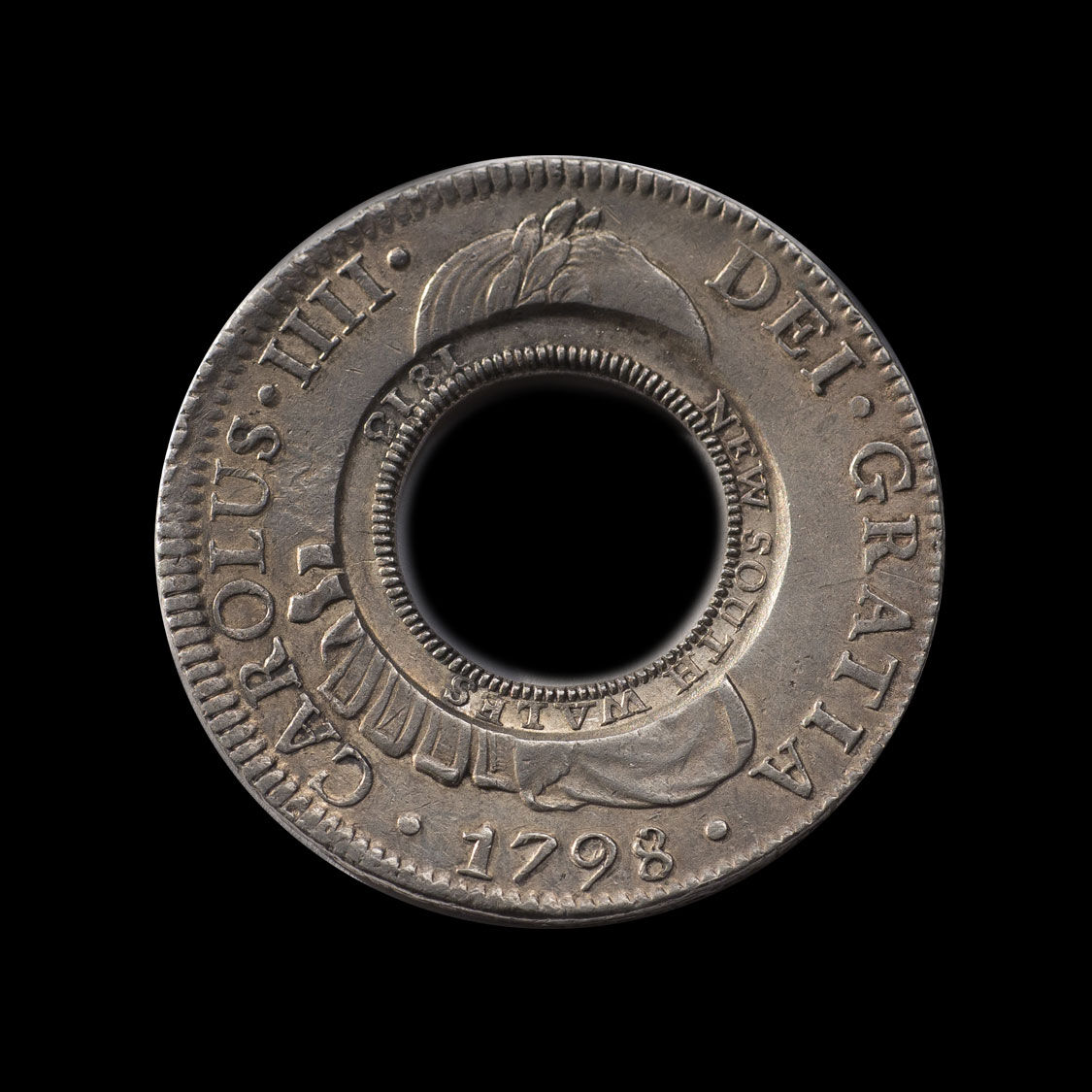 The earlier the date of the silver dollar, the greater the potential for circulation before the nation’s first mint-master, William Henshall, got his hands on it. In the case of this Holey Dollar the silver dollar had 15 years of potential circulation before it was holed.