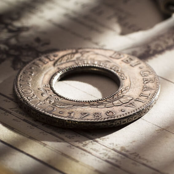 This Holey Dollar began its life as a Spanish Silver Dollar struck in 1780 during the reign of King Charles III.