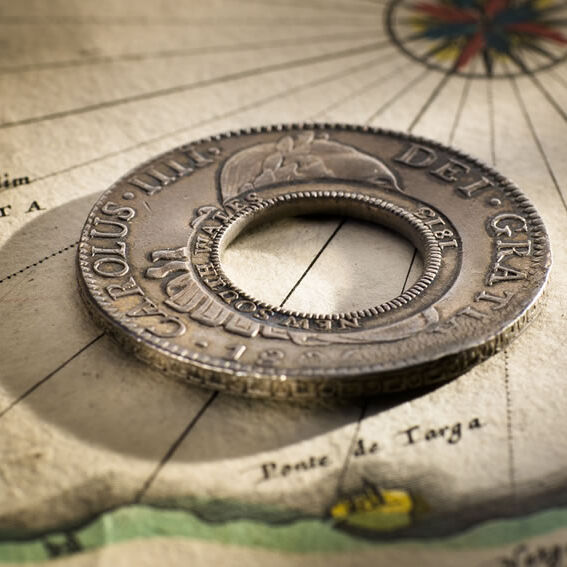 This 1813 Holey Dollar has a distinguished provenance that can be traced back to 1901. The coin has attracted sustained buyer interest right across the globe for more than a century, in London and New York, reflecting the international appeal of the Holey Dollar. The buyer attention that it has received also is an affirmation of its quality for it is one of the finest Holey Dollars with the original coin, an 1805 Mexico Mint Silver Dollar, graded about Extremely Fine. But it is the countermarks “1813” and “New South Wales”, stamped around the inner circular edge that separates this coin from most. They are graded at about Uncirculated, with glorious, original silver lustre.