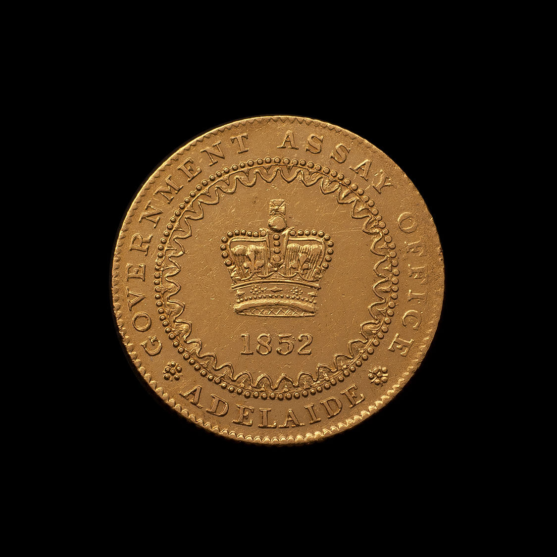 The 1852 Adelaide Pound is the nation’s first gold coin, struck at the Government Assay Office in Adelaide from 22 carat gold brought from the Victorian goldfields.