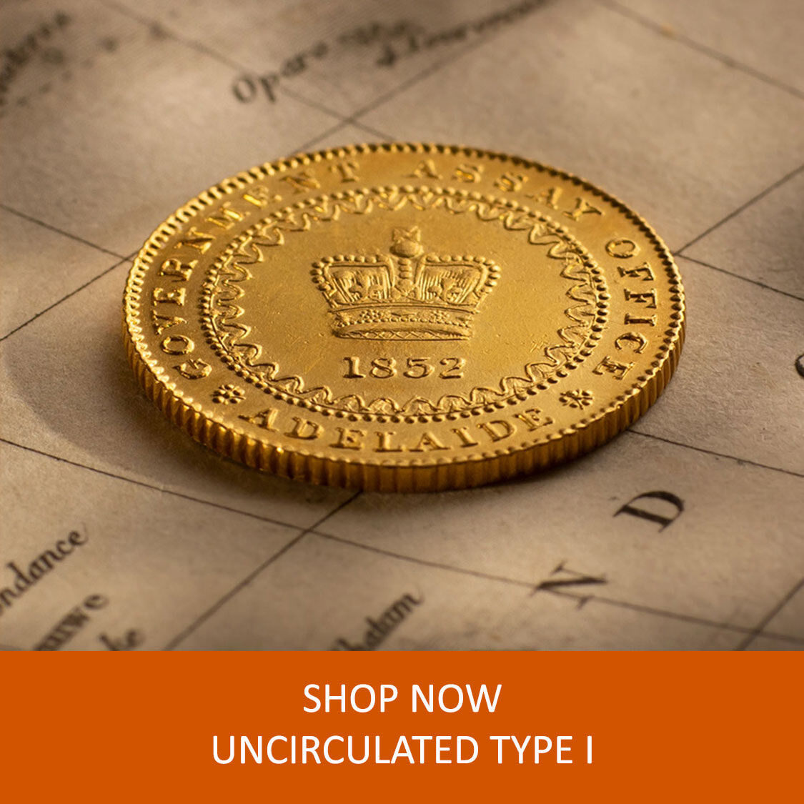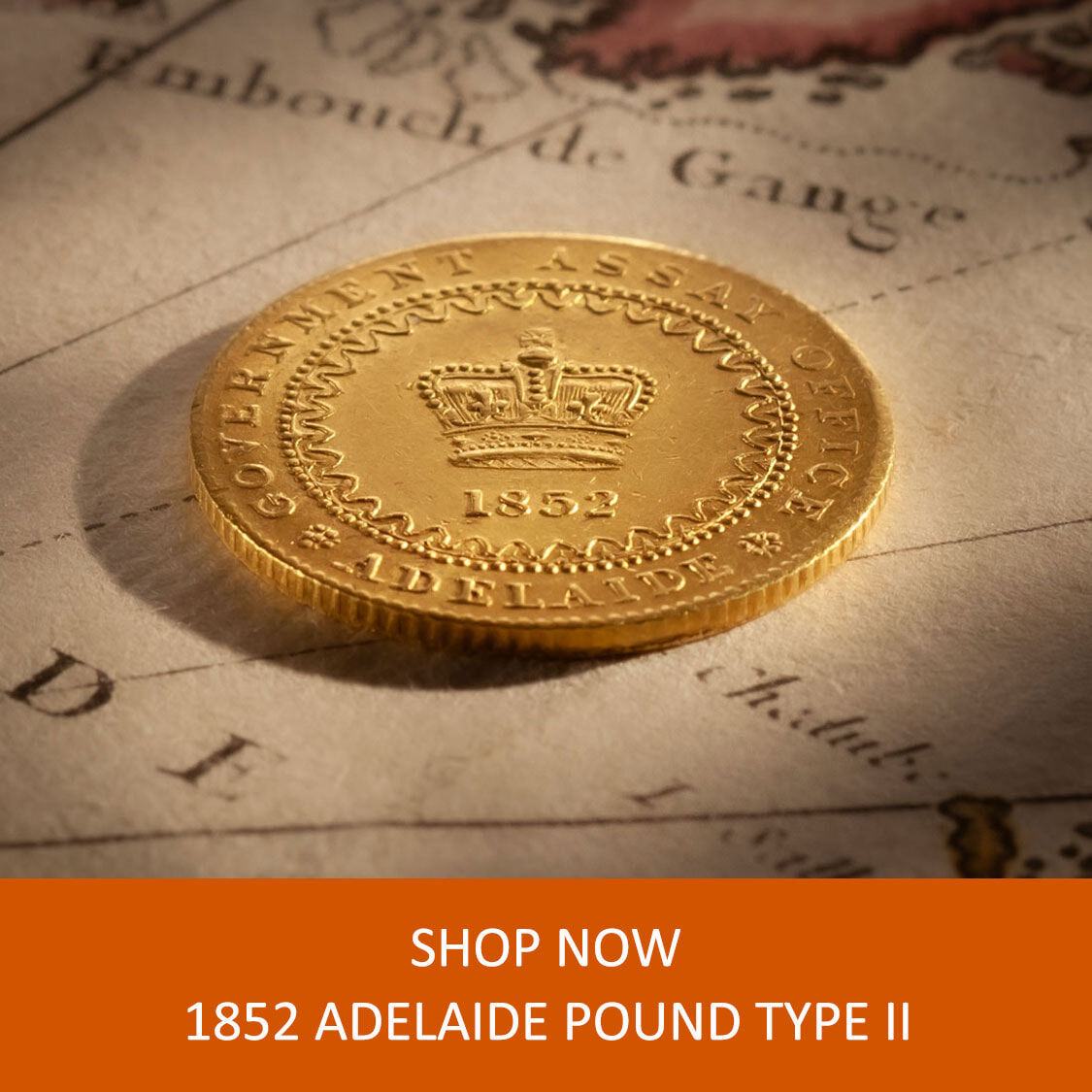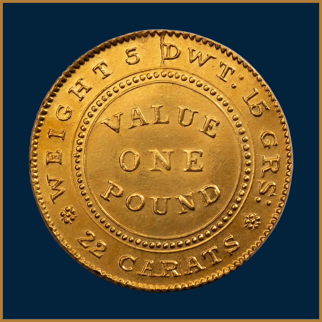 The 1852 Adelaide One Pound, the nation’s first gold coin struck at South Australia's Government Assay Office.