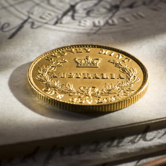 Australia’s gold coin history began in 1855 with the opening of the nation’s first mint in Sydney. The mint issued its first sovereign on 23 June 1855 featuring the portrait of Queen Victoria on the obverse and a uniquely Australian design on the reverse. The Sydney Mint design continued until 1870.