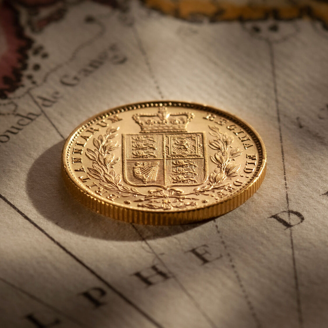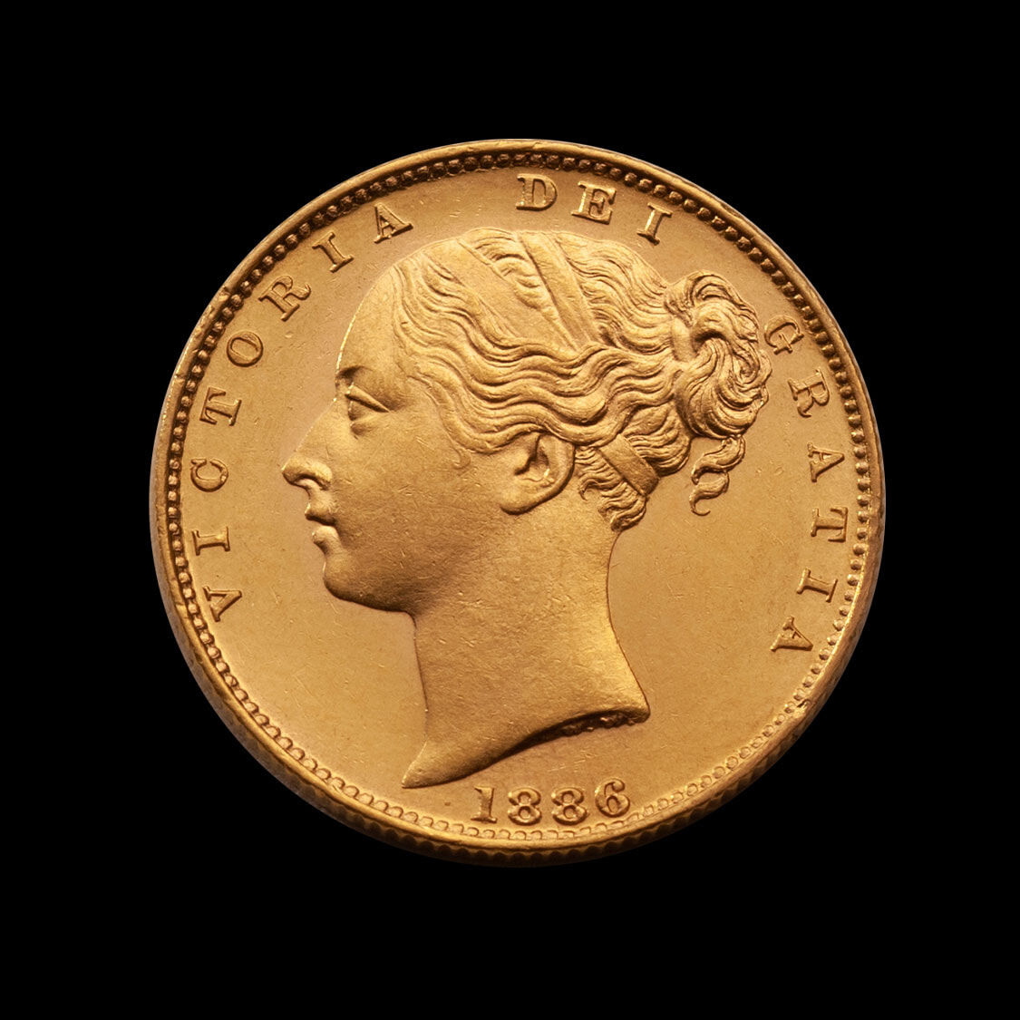 1886 Young Head Shield Sovereign Obverse by William Wyon.