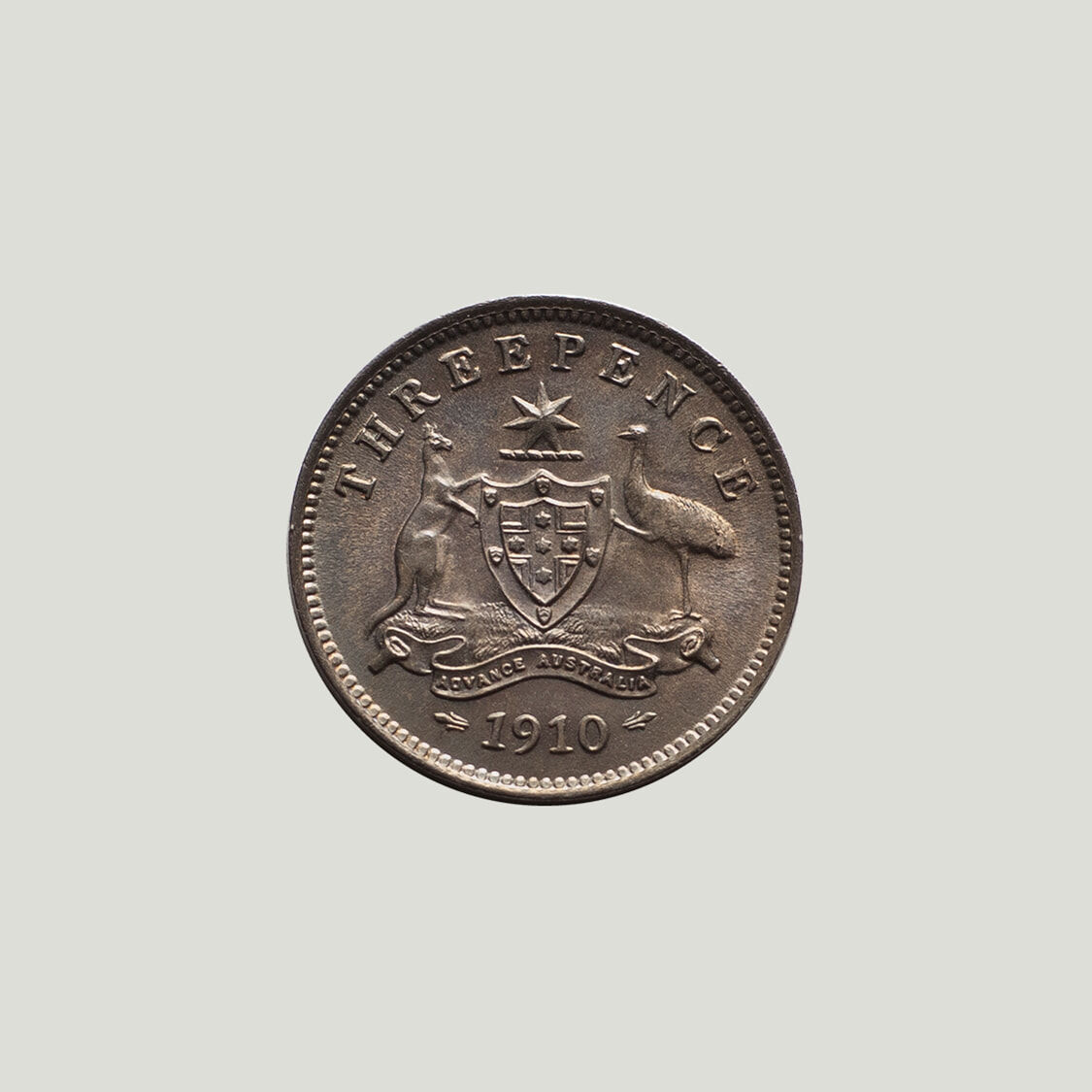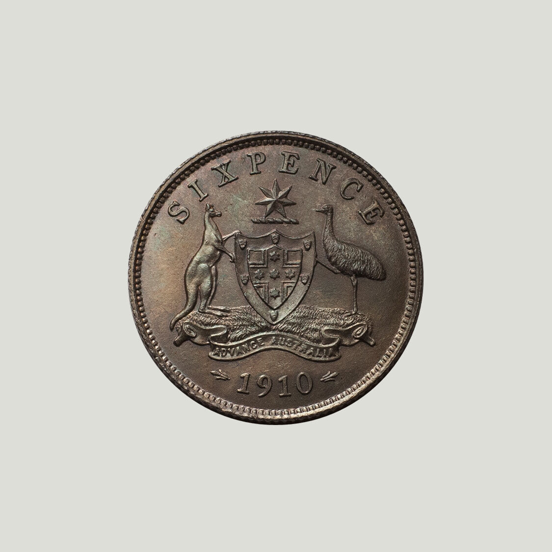 The first silver coins of the new Commonwealth were eventually struck in 1910. Unfortunately, none of Australia’s three mints were set up to strike the new denominations, so the coins were struck at the Royal Mint in London.