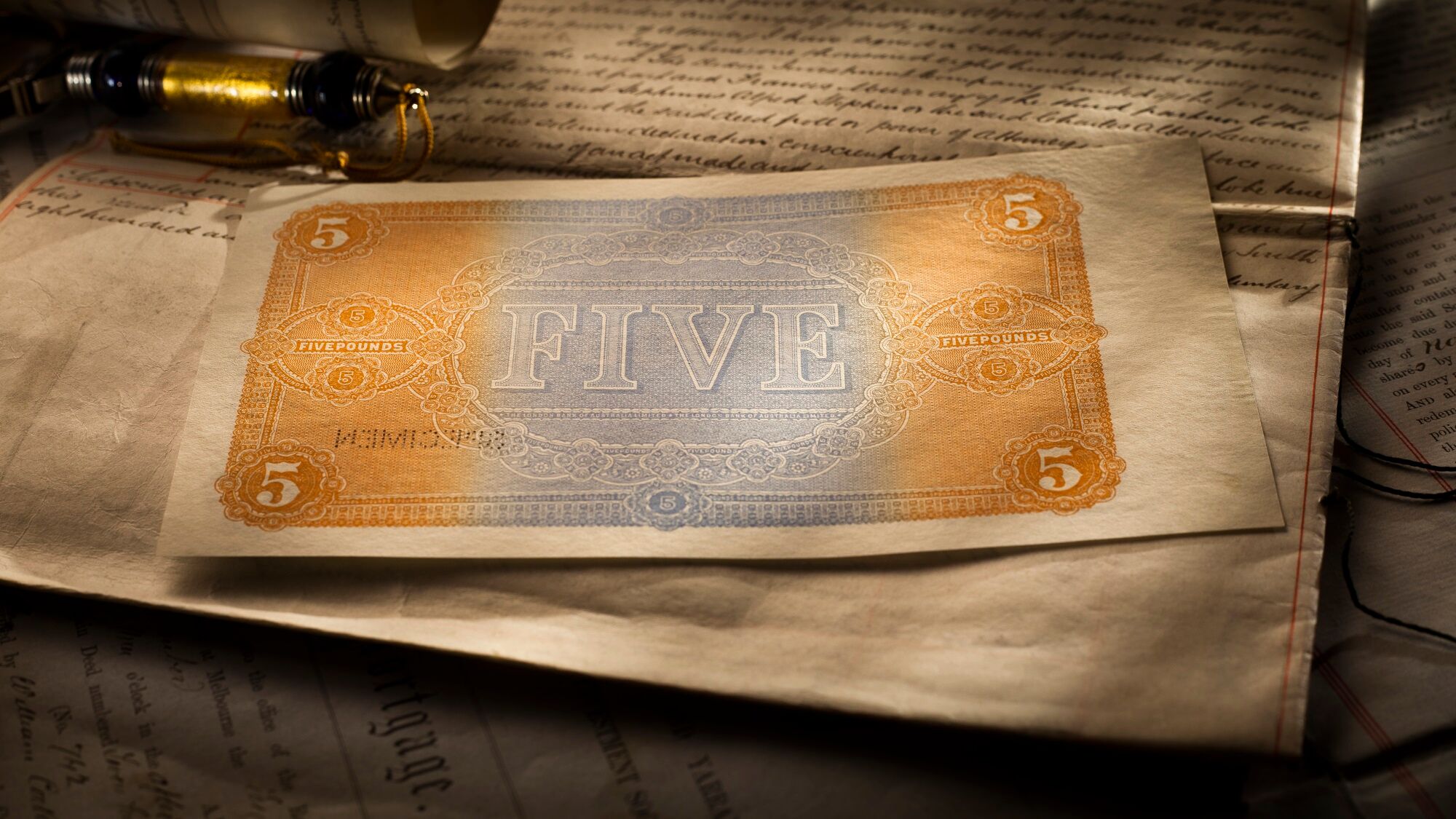 More than a century of Australian history is presented in this crisp, colonial banknote. Australia’s private banking sector exploded following the gold rush of the 1850s; one of the new banks formed was the London Bank of Australia Ltd. The bank was established in London in 1852 to exploit the rapidly expanding economies of the Australian colonies with its first Australian branch opening in Sydney and Melbourne in 1853. During the financial crisis of 1893, a run on deposits forced the bank to suspend payments and close its doors. While many other private banks failed, the London Bank of Australia showed its resilience when it re-opened four months later and continued to robustly trade. The history of this colonial bank lives on. The London Bank of Australia Limited was subsequently absorbed by the English, Scottish and Australian Bank Limited in 1921 (ES&A) which in turn amalgamated with the ANZ Bank in 1970.