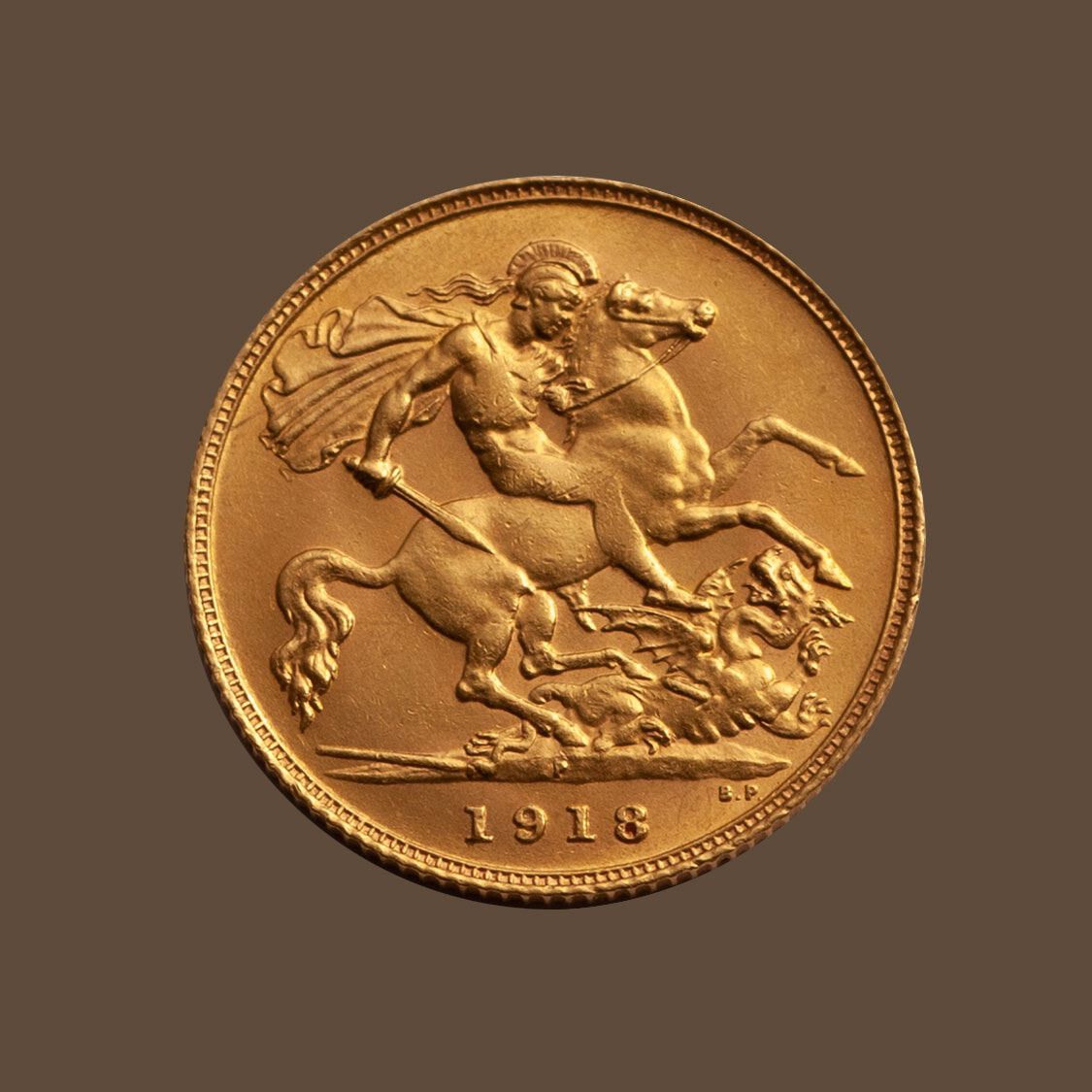 The last half sovereign to depict his portrait was dated 1918.