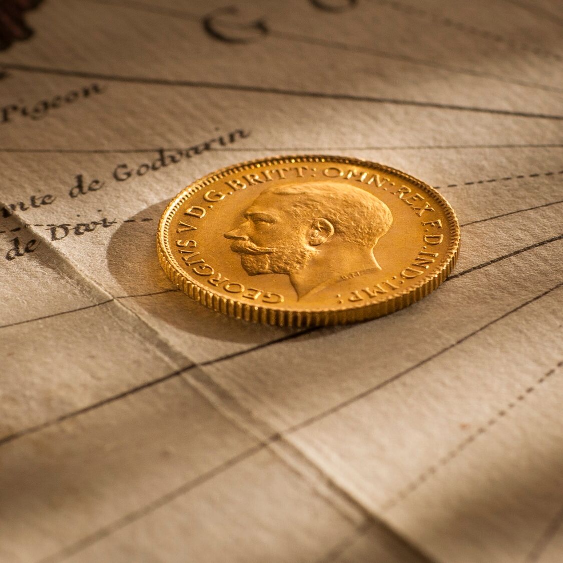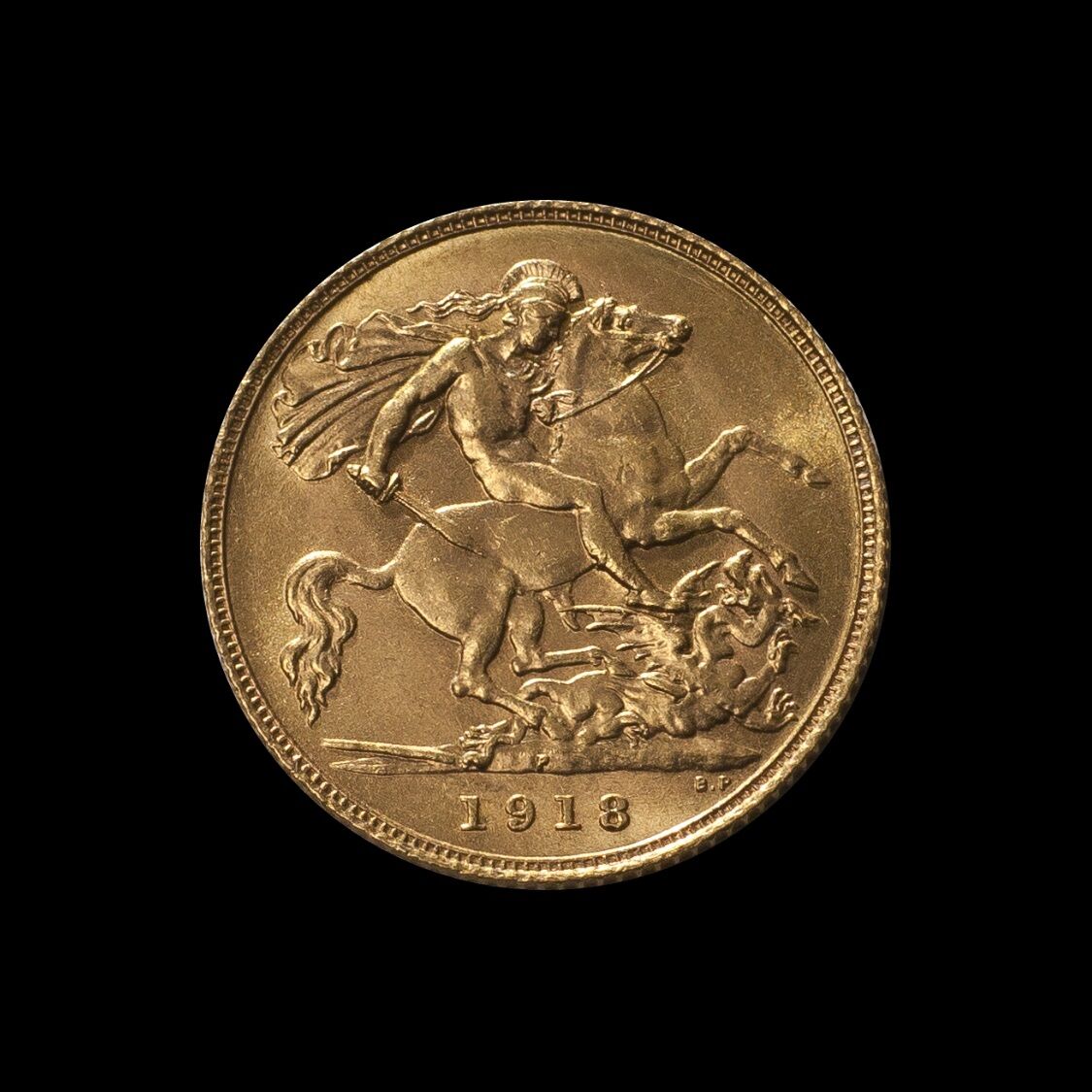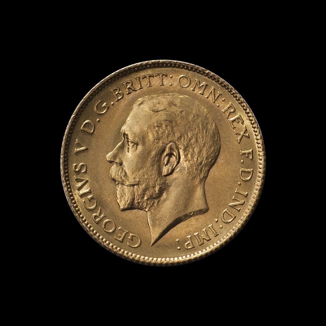 Obverse of the 1918 Half Sovereign depicting the portrait of George V.