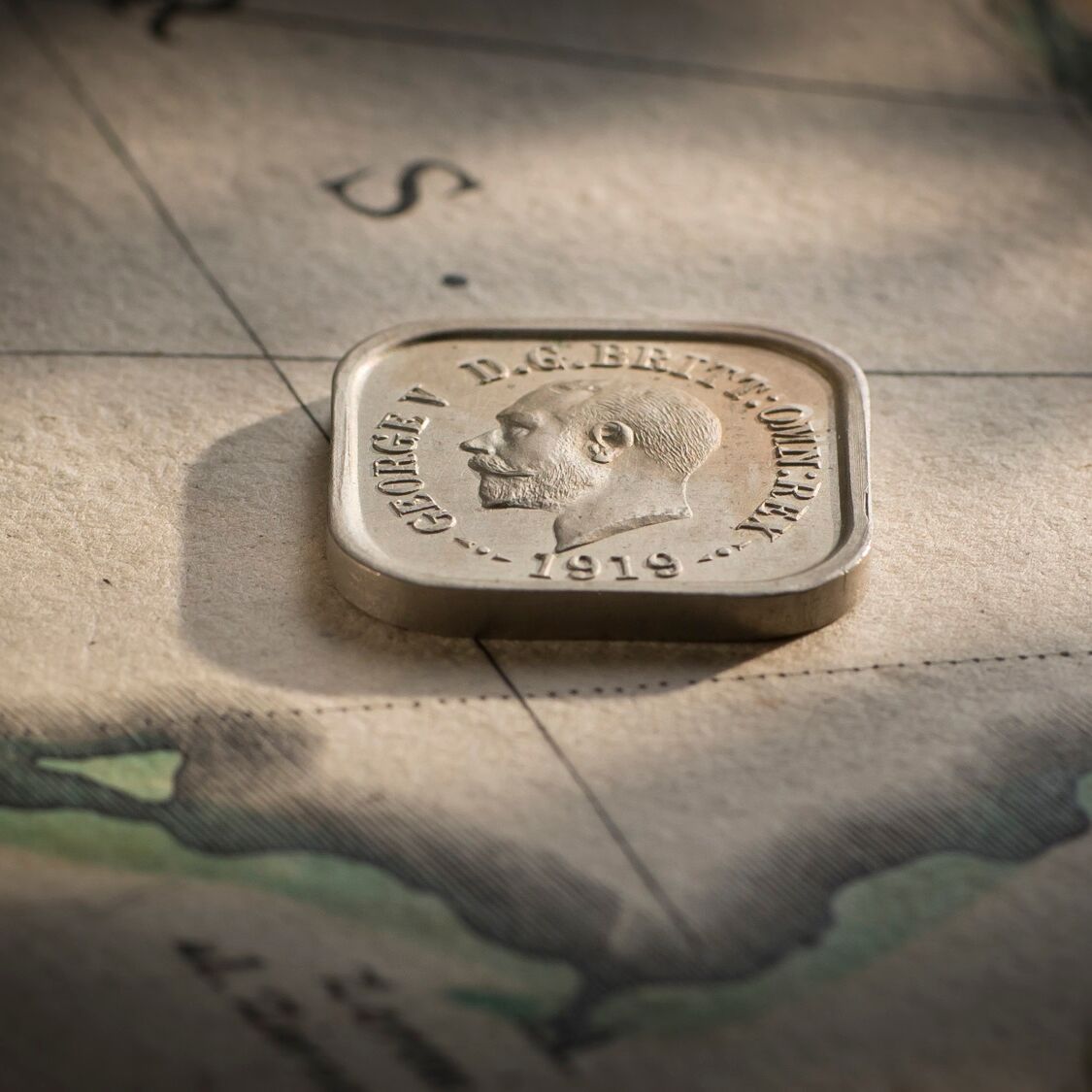 It is on record that his 1921 Square Penny and 1921 Square Halfpenny sold for £36. Even more interesting is that in the same auction an Extremely Fine Ferdinand VII Holey Dollar sold for just over twice that amount at £72 10/-. (The Holey Dollar is now a $450,000-plus item.)