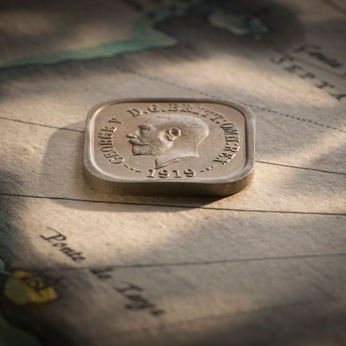 It is on record that his 1921 Square Penny and 1921 Square Halfpenny sold for £36. Even more interesting is that in the same auction an Extremely Fine Ferdinand VII Holey Dollar sold for just over twice that amount at £72 10/-. (The Holey Dollar is now a $450,000-plus item.)