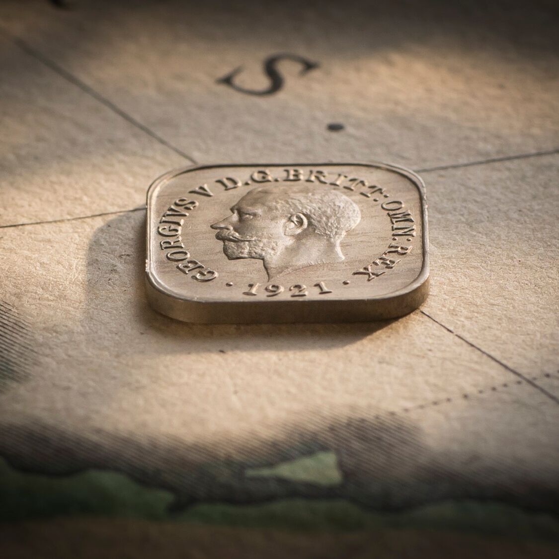 It is on record that his 1921 Square Penny and 1921 Square Halfpenny sold for £36. Even more interesting is that in the same auction an Extremely Fine Ferdinand VII Holey Dollar sold for just over twice that amount at £72 10/-. (The Holey Dollar is now a $450,000-plus item.)