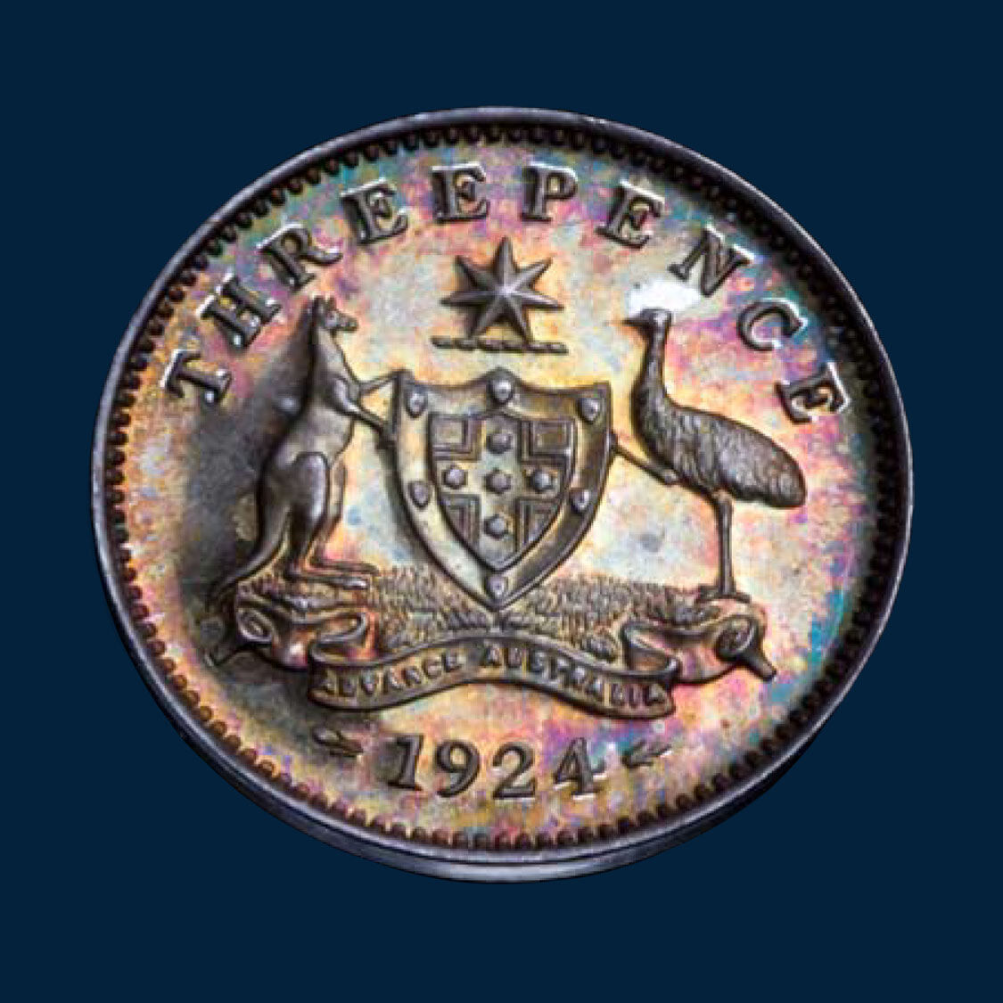 This 1924 Proof Threepence and 1926 Proof Threepence were not struck for collectors as part of any mass-marketing sales campaign. They were struck for the mint's archives and the privileged few. Because it was a specially arranged striking of presentation pieces, only a handful were struck.