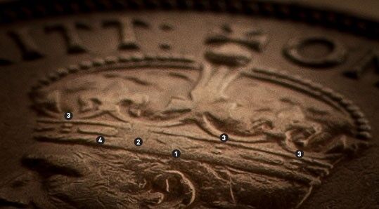 And while all of the above details may seem very technical … it is the complete and strong central diamond, the complete lower band and the ‘smudging’ of the seventh and eighth pearl that places this coin in a league of its own and justifies the supreme quality level of Good Very Fine.