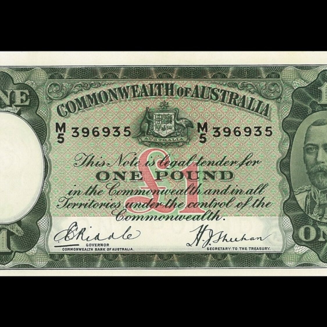 The departure from the gold standard in 1932 saw a major overhaul of Australia’s banknotes. Instead of a promise to redeem the note for its value in gold, new wording on all notes proclaimed the following: “This note is legal tender for One Pound in the Commonwealth and all territories under the control of the Commonwealth”.