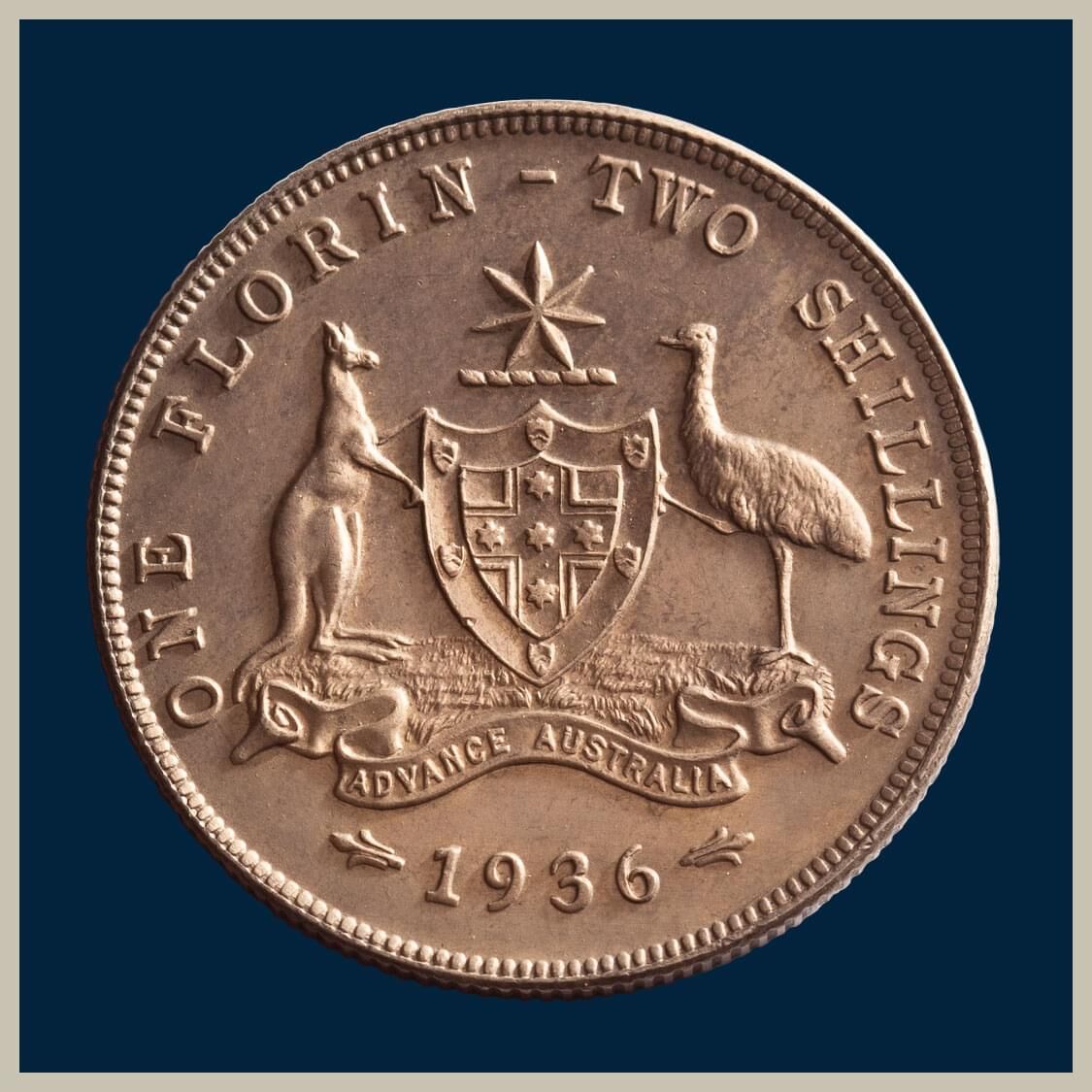 This 1936 Proof Florin was especially struck at the Melbourne Mint as a Coin of Record.