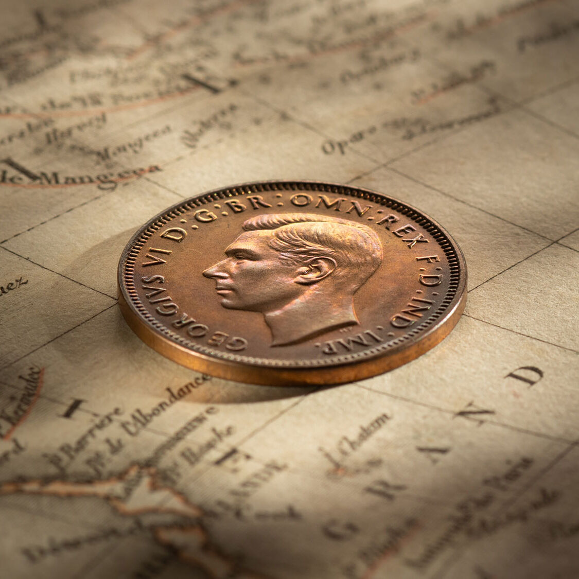 The mint would again, seven years later, strike proofs. This time a set of six proof coins of each of the denominations from the halfpenny through to the florin. The 1934 Six Coin Proof Set.