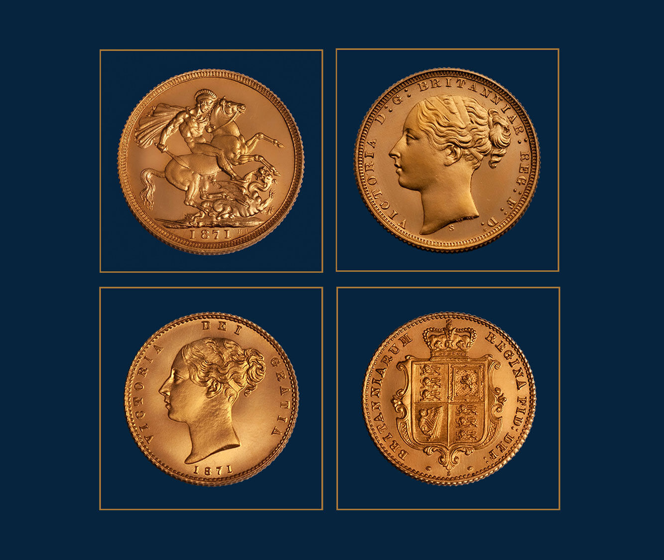The very first proof coins struck in Australia, the 1871 Sydney Mint Proof Sovereign and Proof Half Sovereign.