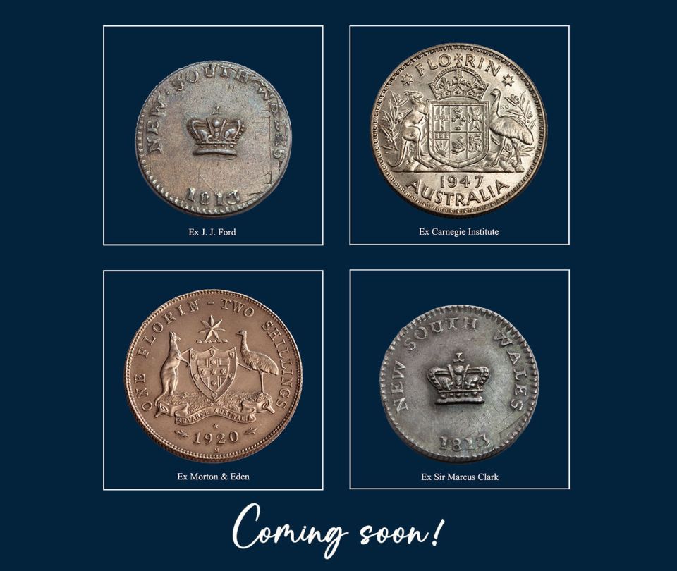 Gilt-edge numismatic rarities ... the Sir Marcus Clark 1813 Dump • J.J. Ford 1813 Dump • Morton & Eden 1920 Star Florin • Carnegie Institute 1947 Proof Florin.