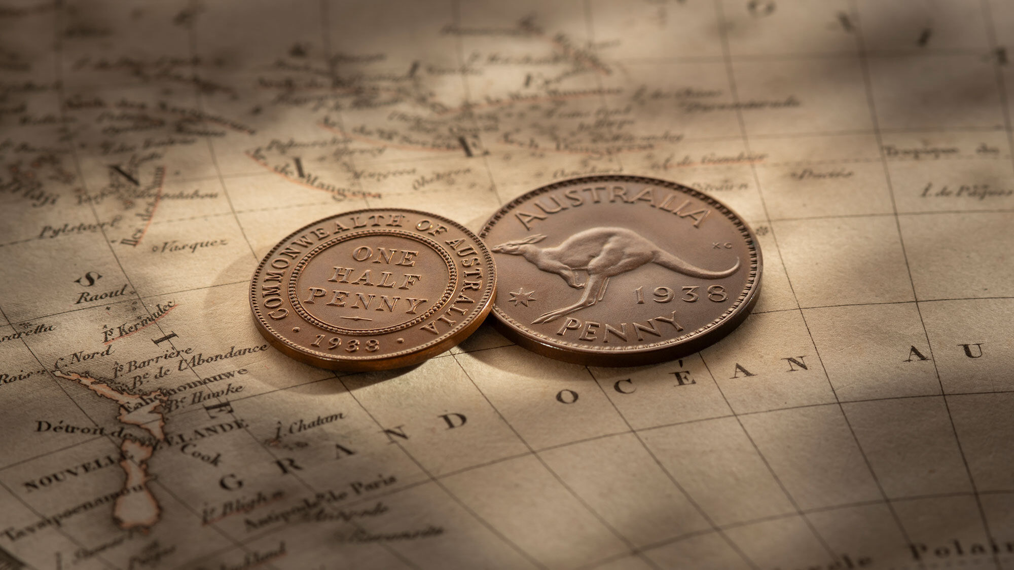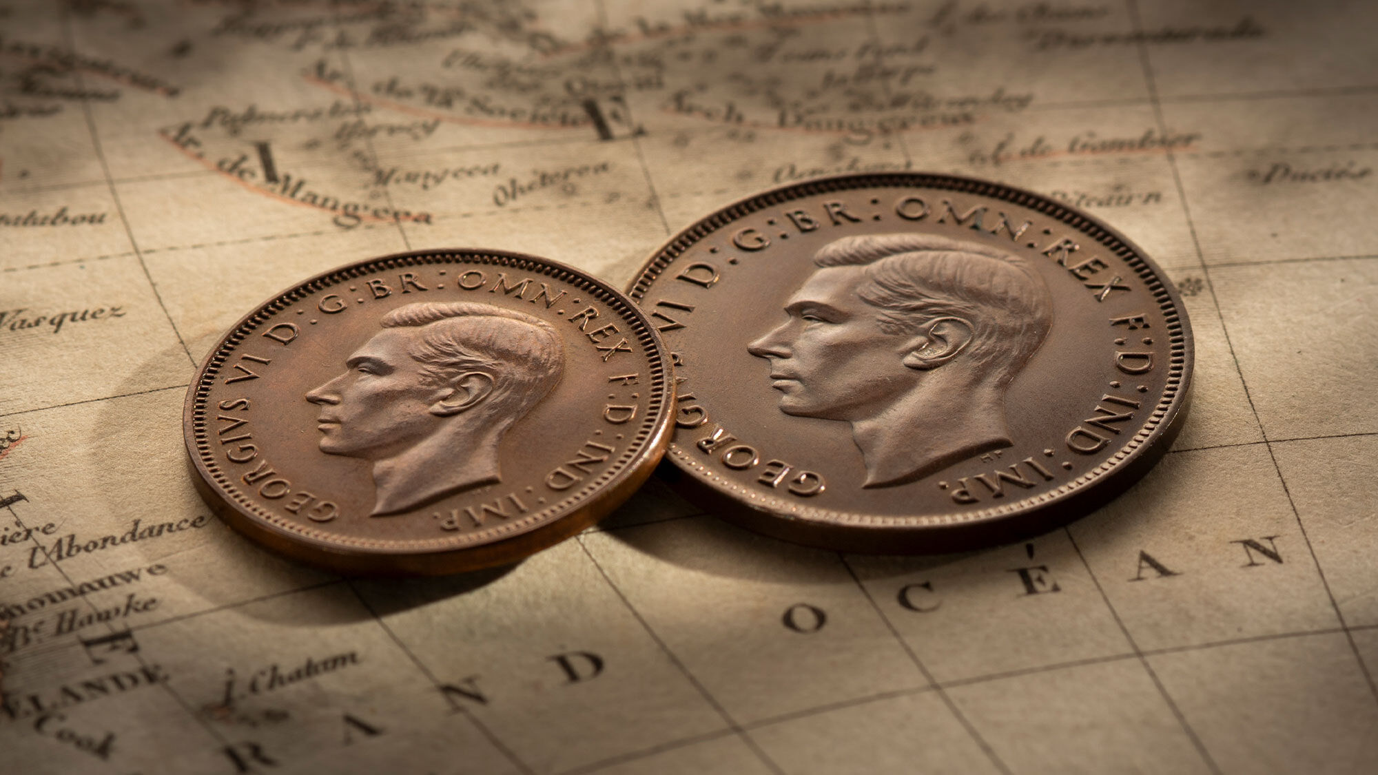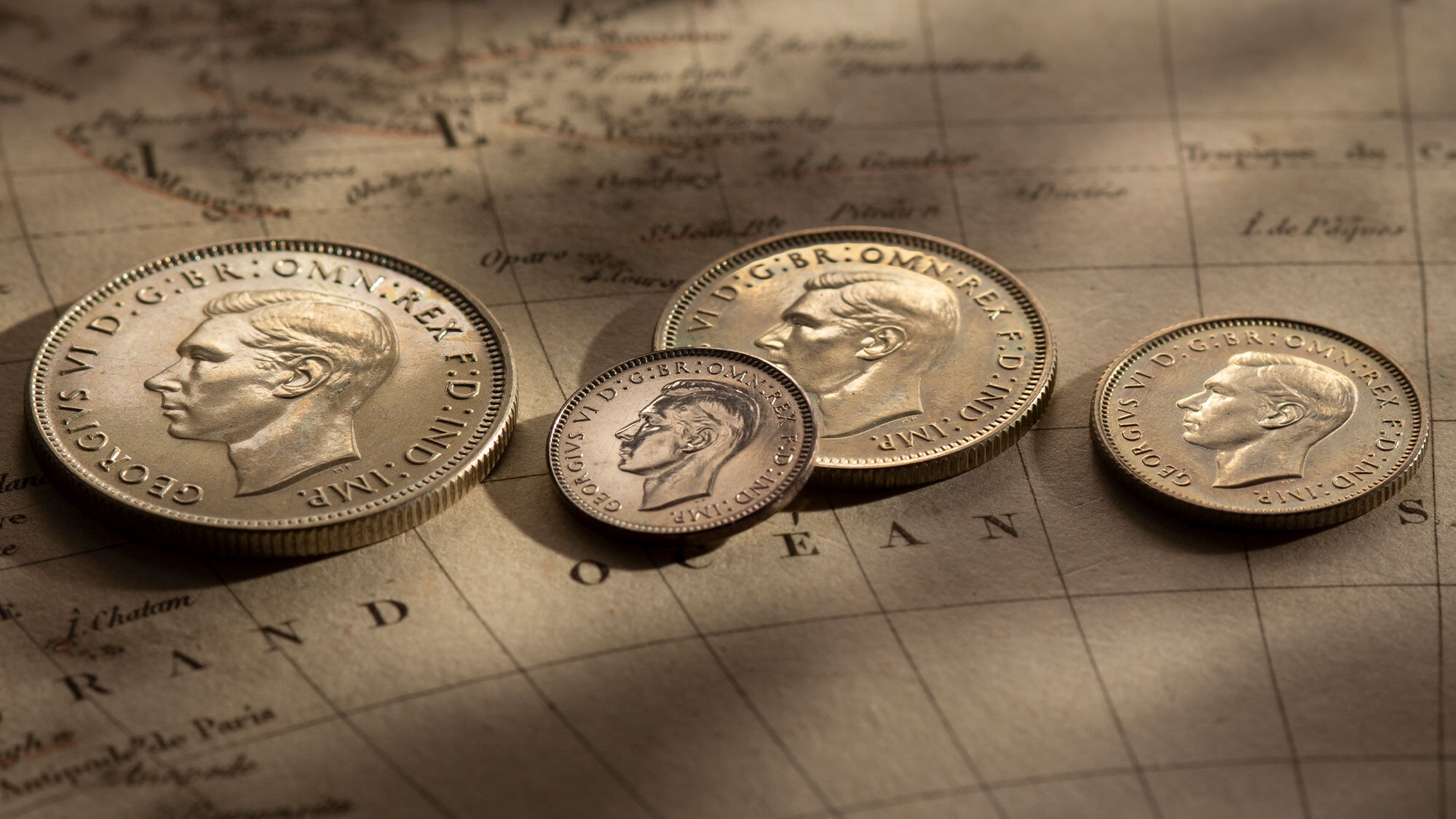 The coins featured the new monarch, George VI and introduced new designs for the penny, with the bounding kangaroo. The shilling with the ram’s head. And the ears of wheat on the threepence.