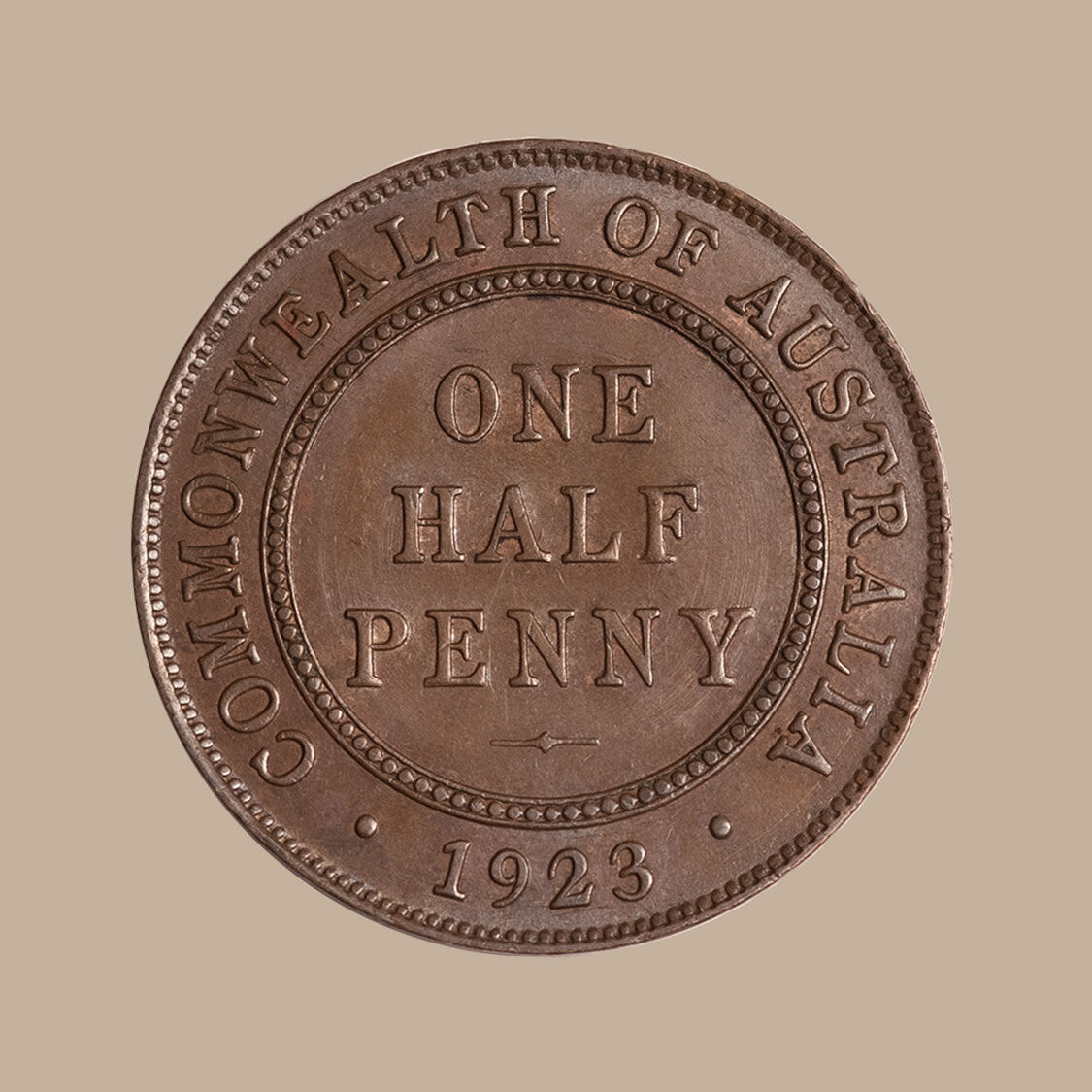 The 1923 Halfpenny was in fact struck at the Melbourne Mint in a mintage of approximately 15,000, confirming its status as Australia’s rarest circulating halfpenny.