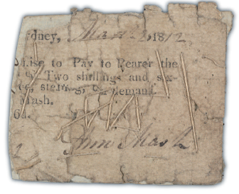 The other records that survive are some of her promissory notes that she issued while owner of the King’s Head Tavern and her other businesses in Sydney.
