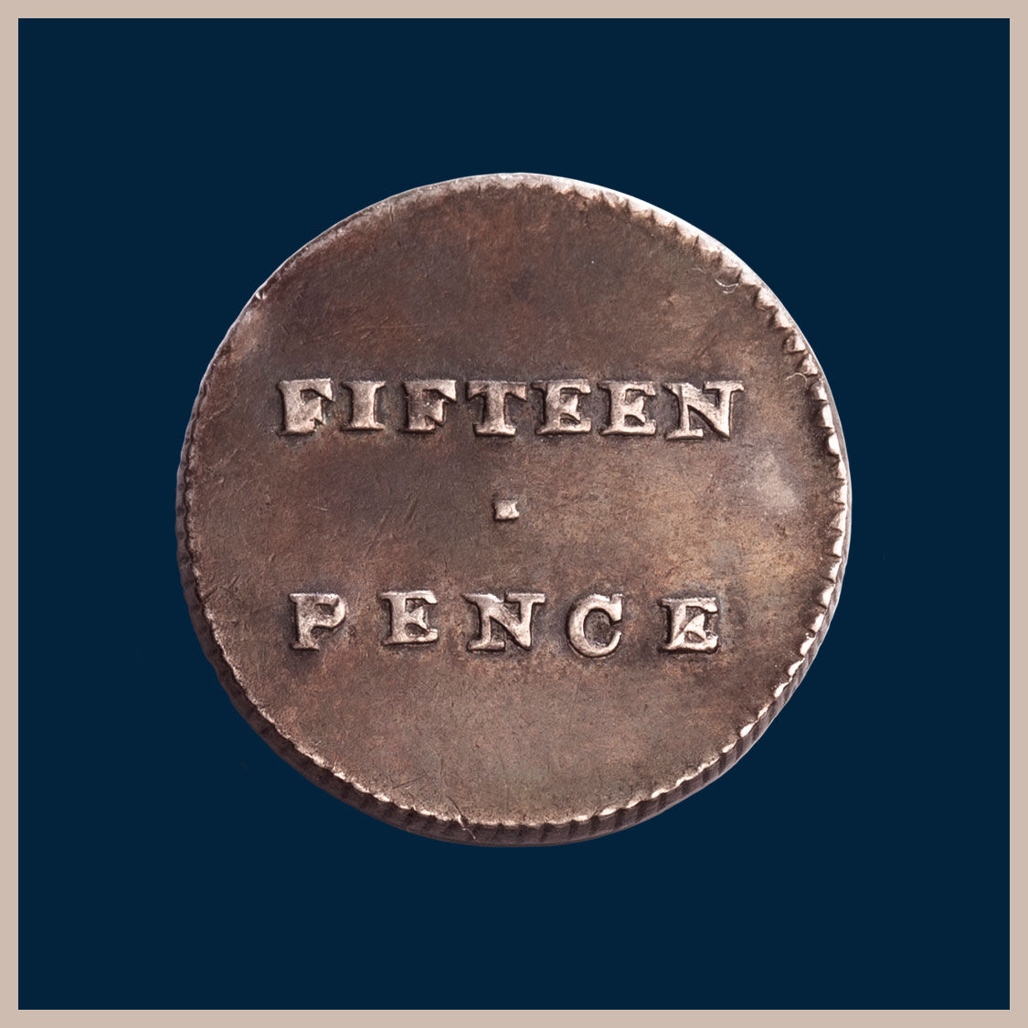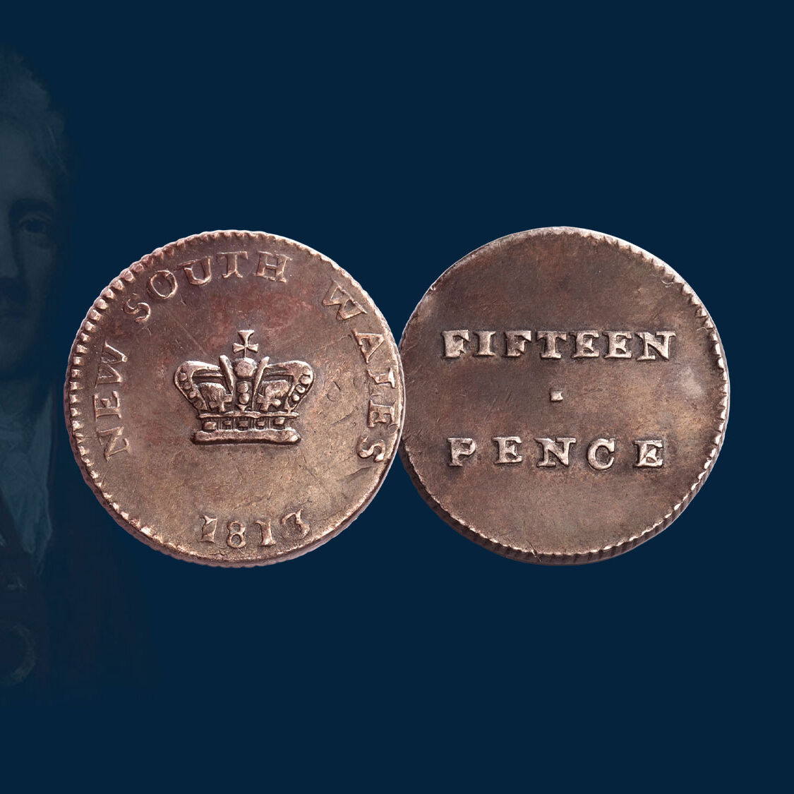 The Dump with a value of fifteen pence circulated widely in the colony, the extreme wear on most Dumps evidence that they saw considerable use. The Holey Dollar being a higher valued piece, at five shillings, had a narrower band of circulation.