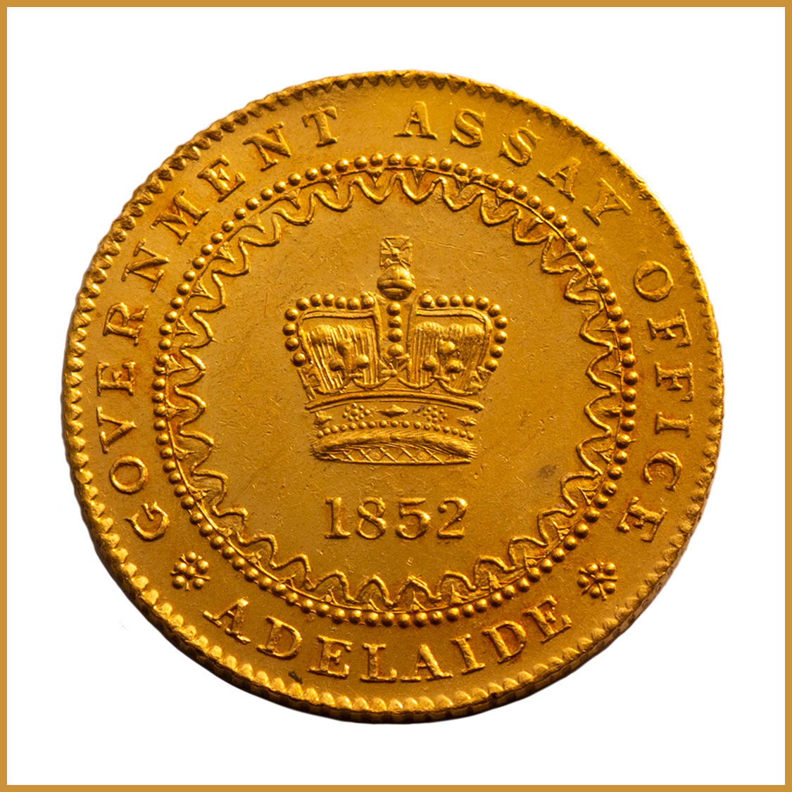 The first gold coin for the nation was struck at the Adelaide Assay Office on 23 September 1852. We know it today as the 1852 Adelaide Pound.