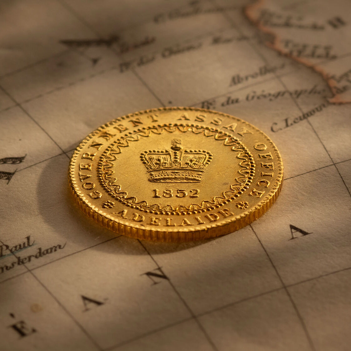 The discovery of gold in 1851 is one of the most extraordinary chapters in Australian history, transforming the economy and society and marking the beginnings of a modern multi-cultural Australia. It also led to the creation of the nation’s first gold coin, the 1852 Adelaide Pound.