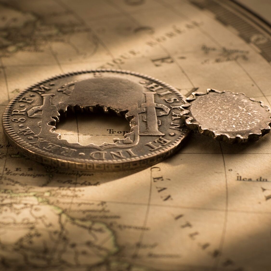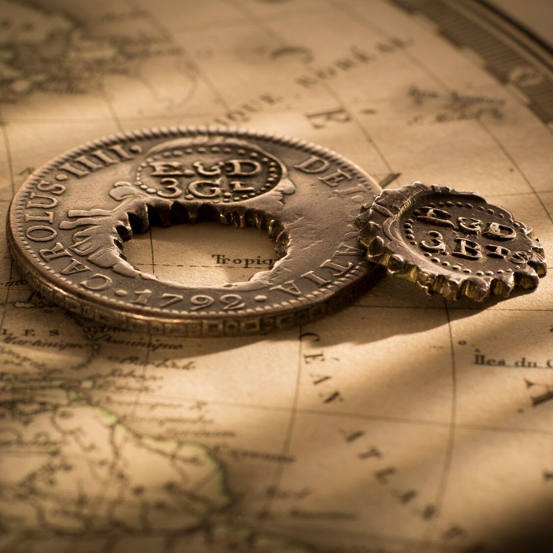 The holed dollar was counter-stamped ‘E & D 3GL’ to confirm the issuing authority of Essequibo and Demerary and the monetary value of 3 Guilders, both of which reflect British Guiana’s early Dutch colonisation.