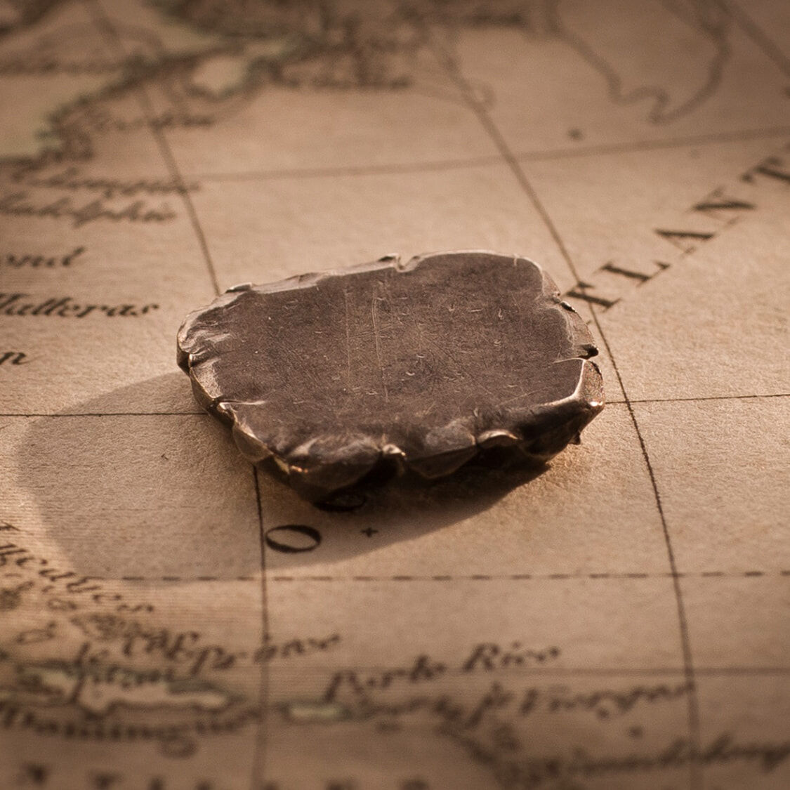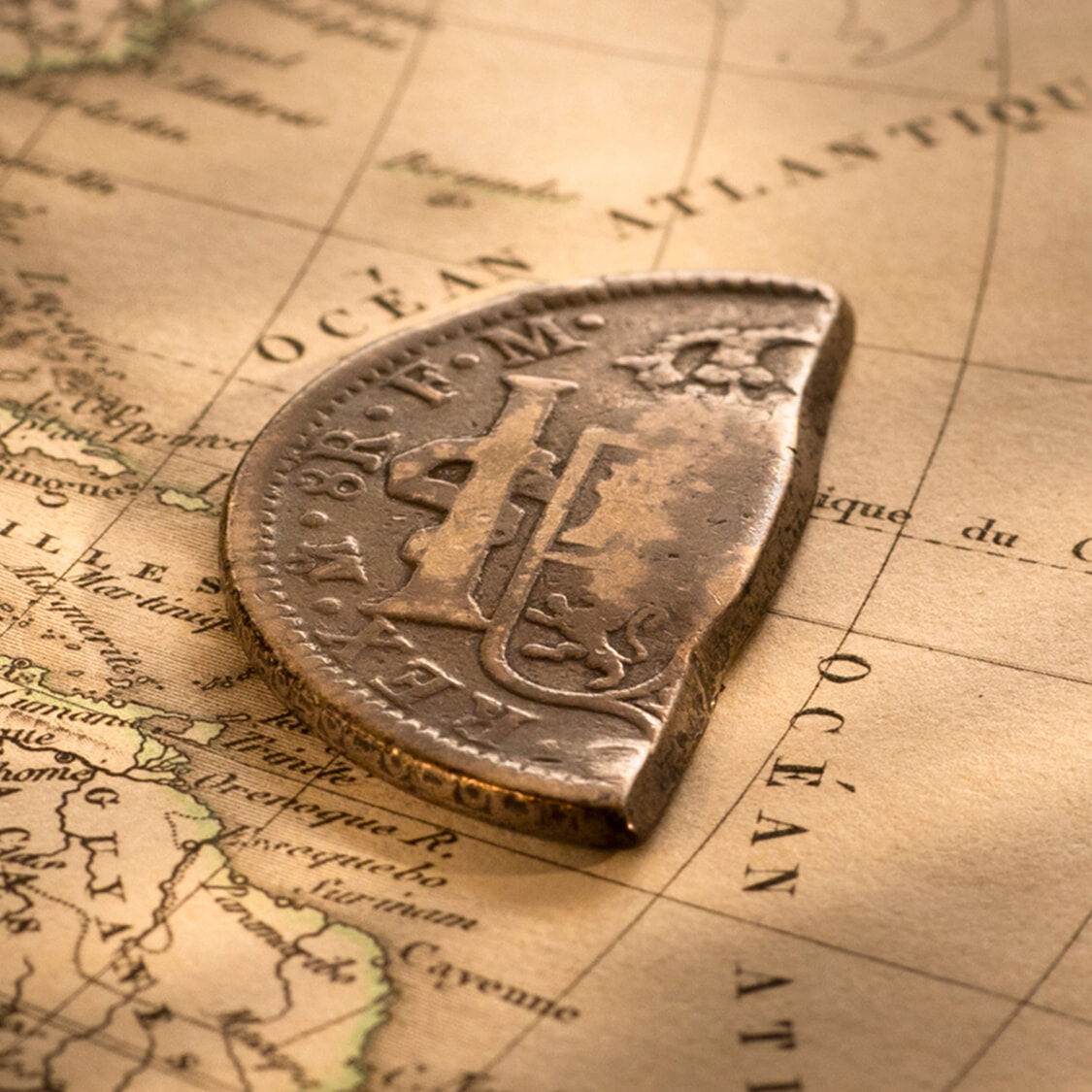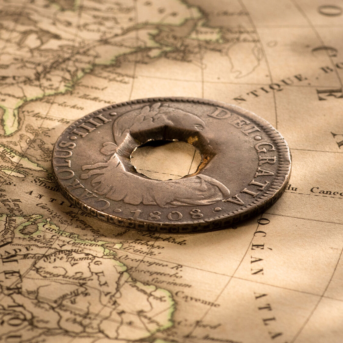 A cut square centre segment of a Spanish Silver Dollar, issued in 1811 in the British colony of Guadelope