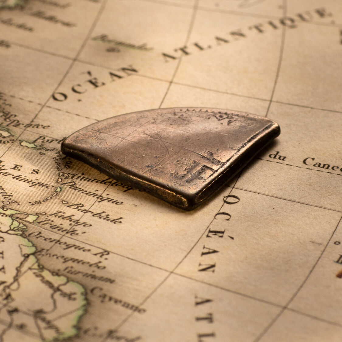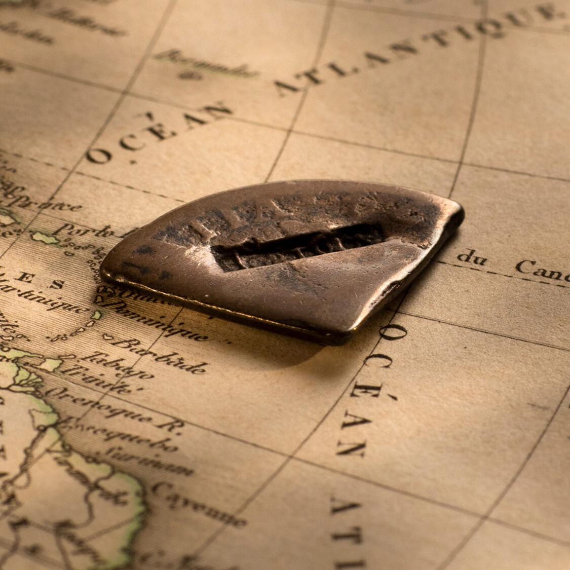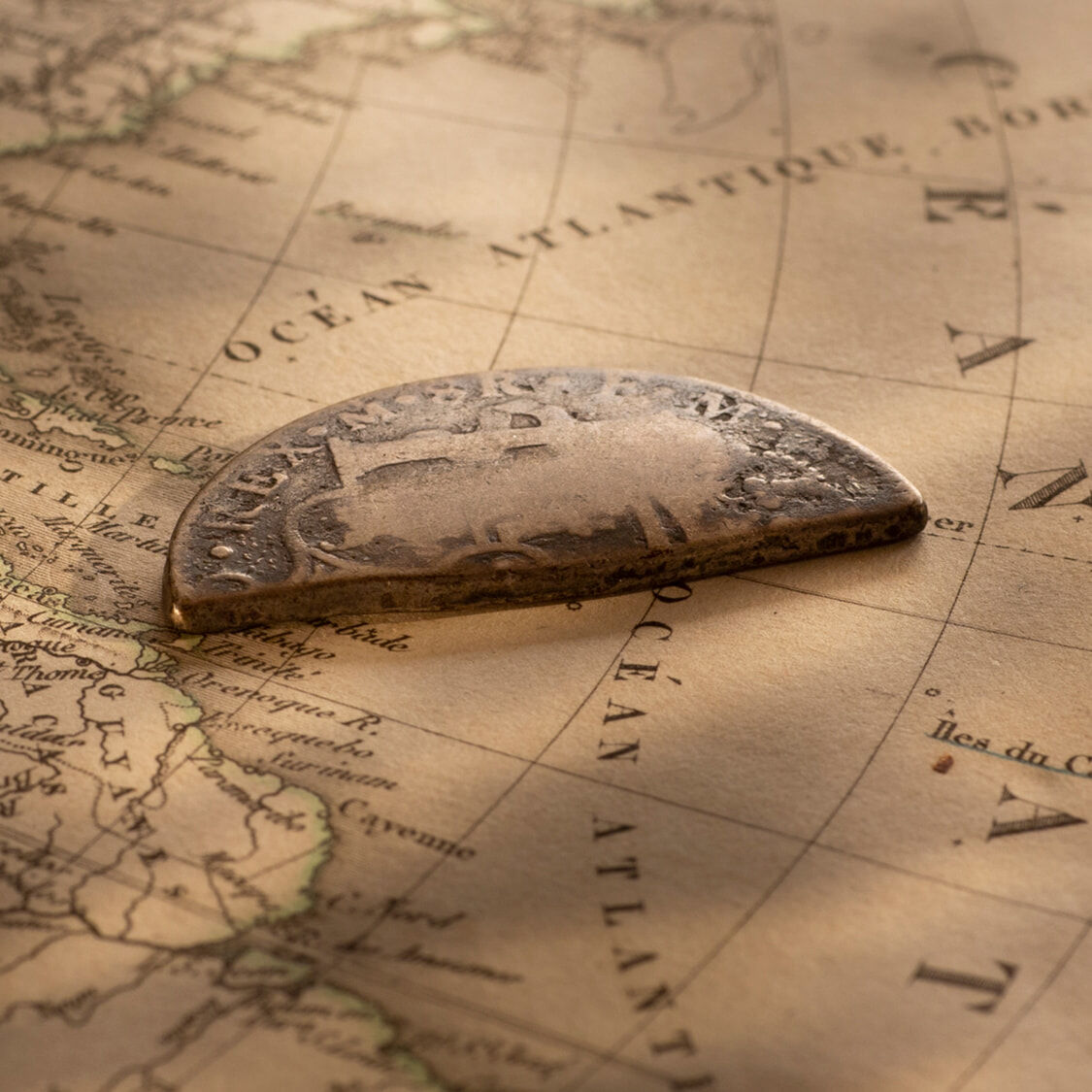 A cut square centre segment of a Spanish Silver Dollar, issued in 1811 in the British colony of Guadelope
