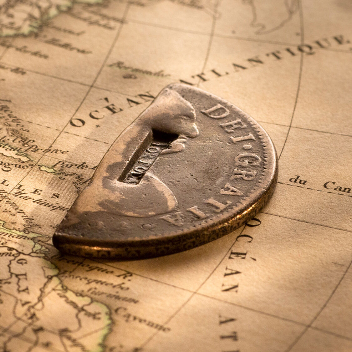 On 3 February 1801, the Assembly of the Virgin Islands passed an Act for stamping half dollars and quarter dollars. 'TORTOLA' was stamped in relief in a rectangular shaped indent.