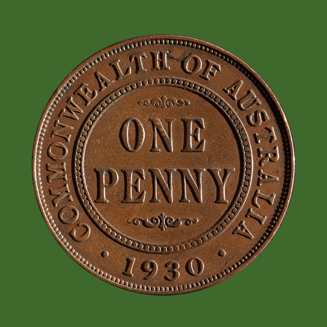 Well circulated (Fine) 1930 Pennies were selling for £50 in the 1950s. A decade later, by decimal changeover, the coins were fetching £255 ($510). By 1988, Australia's Bicentenary, a Fine 1930 Penny had reached $6000. The turn of the century saw 1930 Penny prices move to a minimum of $13,000. Twenty years later prices have more than doubled. And with a 100th anniversary a decade away, the push to acquire Australia’s favourite Penny is really on.