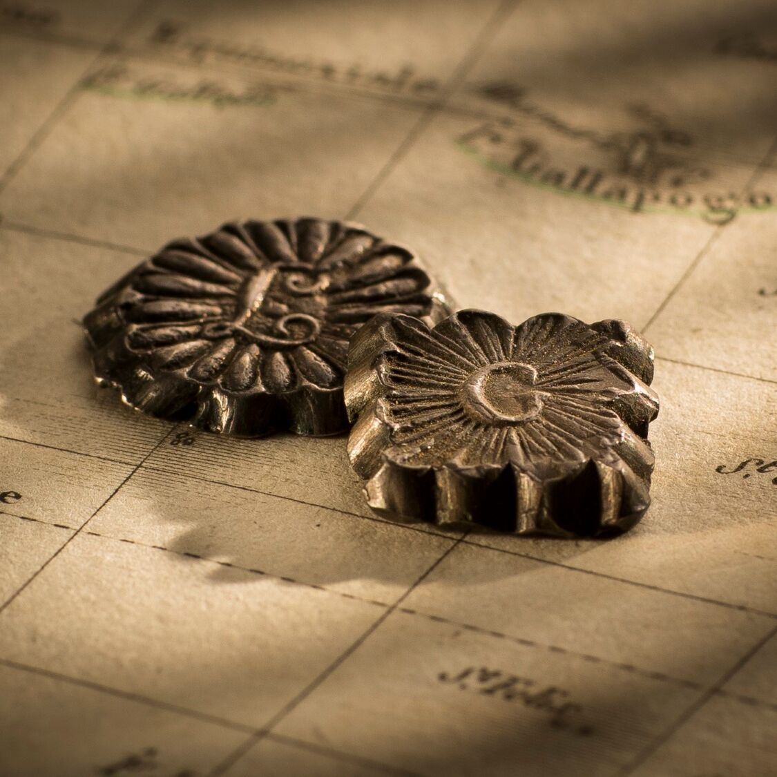 Cut square centre segment of a Spanish Silver Dollar, colony of Guadeloupe, British occupation 1811 (shown above and at right).