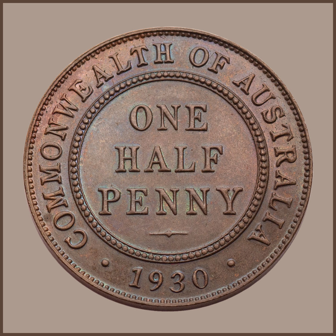The Proof 1930 Halfpenny, a Coin of Record struck at the Melbourne Mint.
