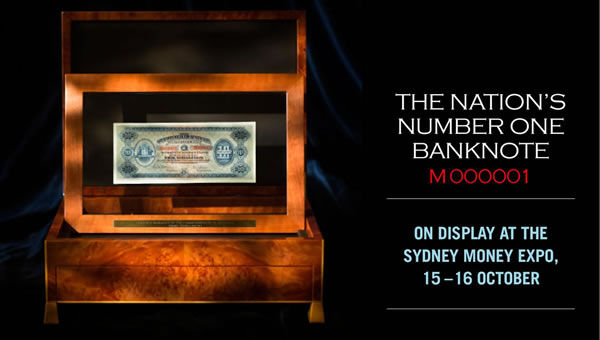 This year’s display of the Number One note at the Sydney Money Expo has been restricted to just two days. After that it will be stored away in a bank vault.