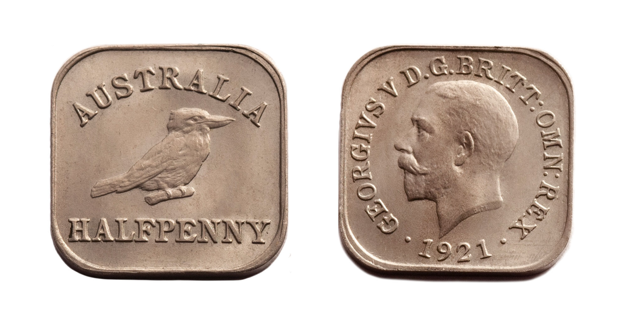 Production of the Kookaburra Penny and Square Halfpenny came to a halt in 1921.