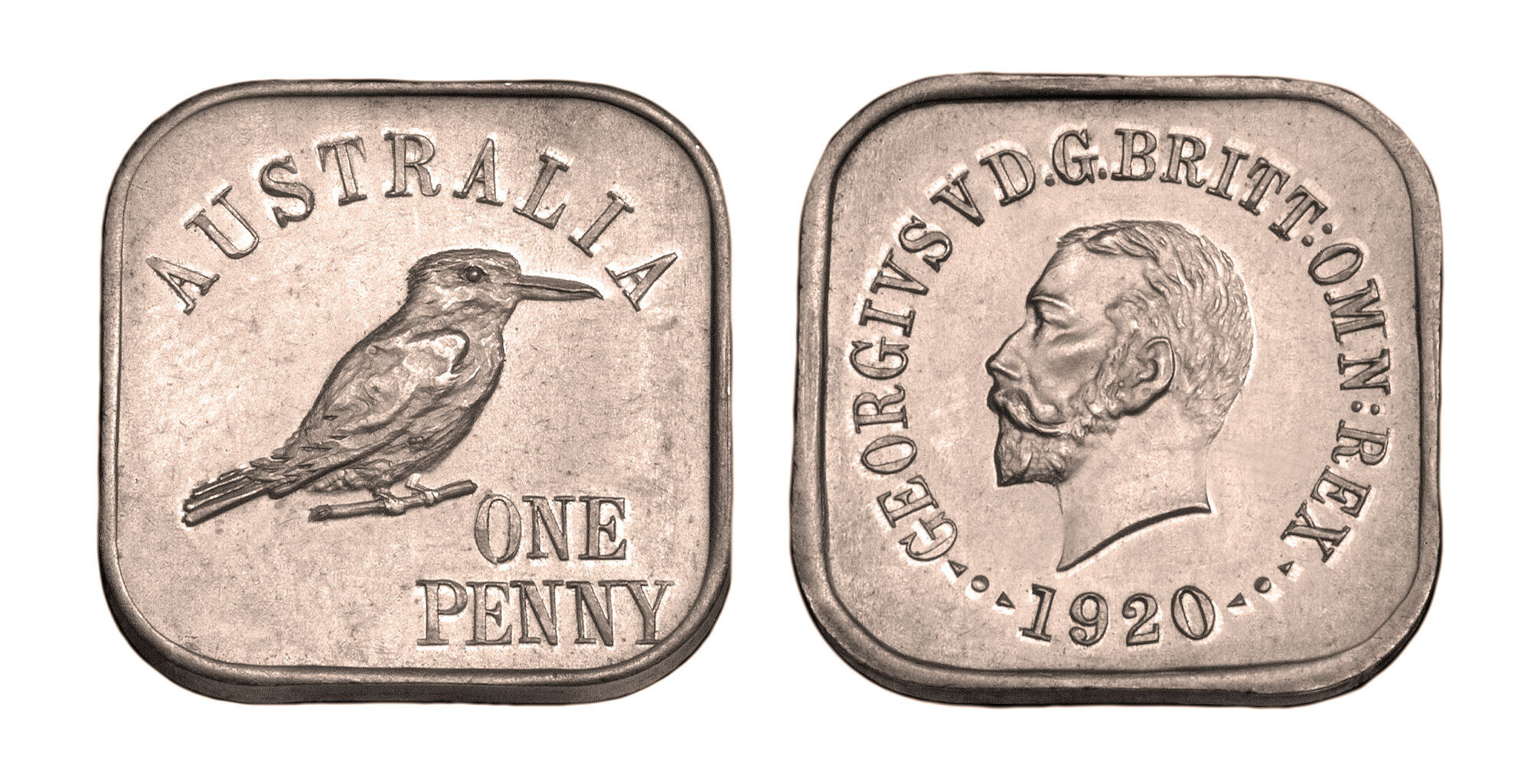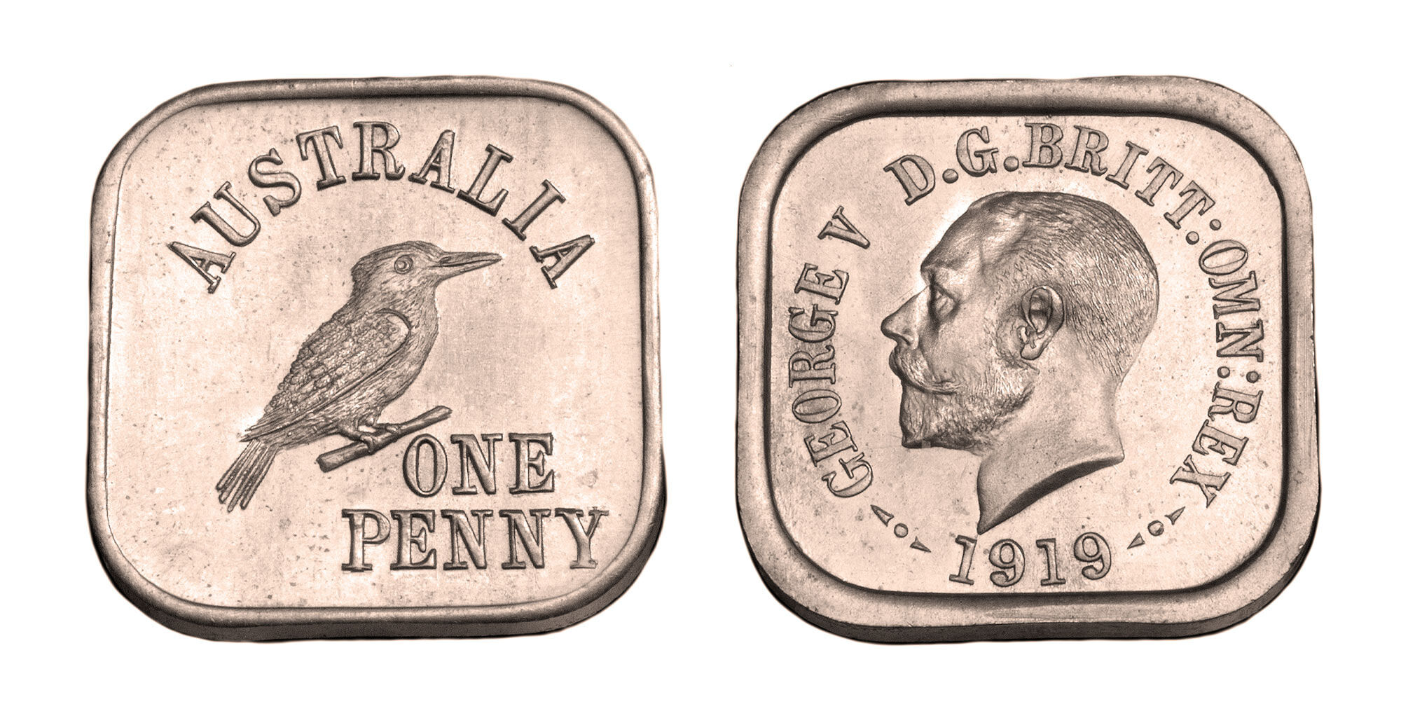 The Melbourne Mint commenced striking Australia's Commonwealth copper pennies in 1919. No sooner had the mint started issuing the coins, than it was directed by Treasury to commence testing an entirely new penny concept, a square coin made from cupro-nickel.