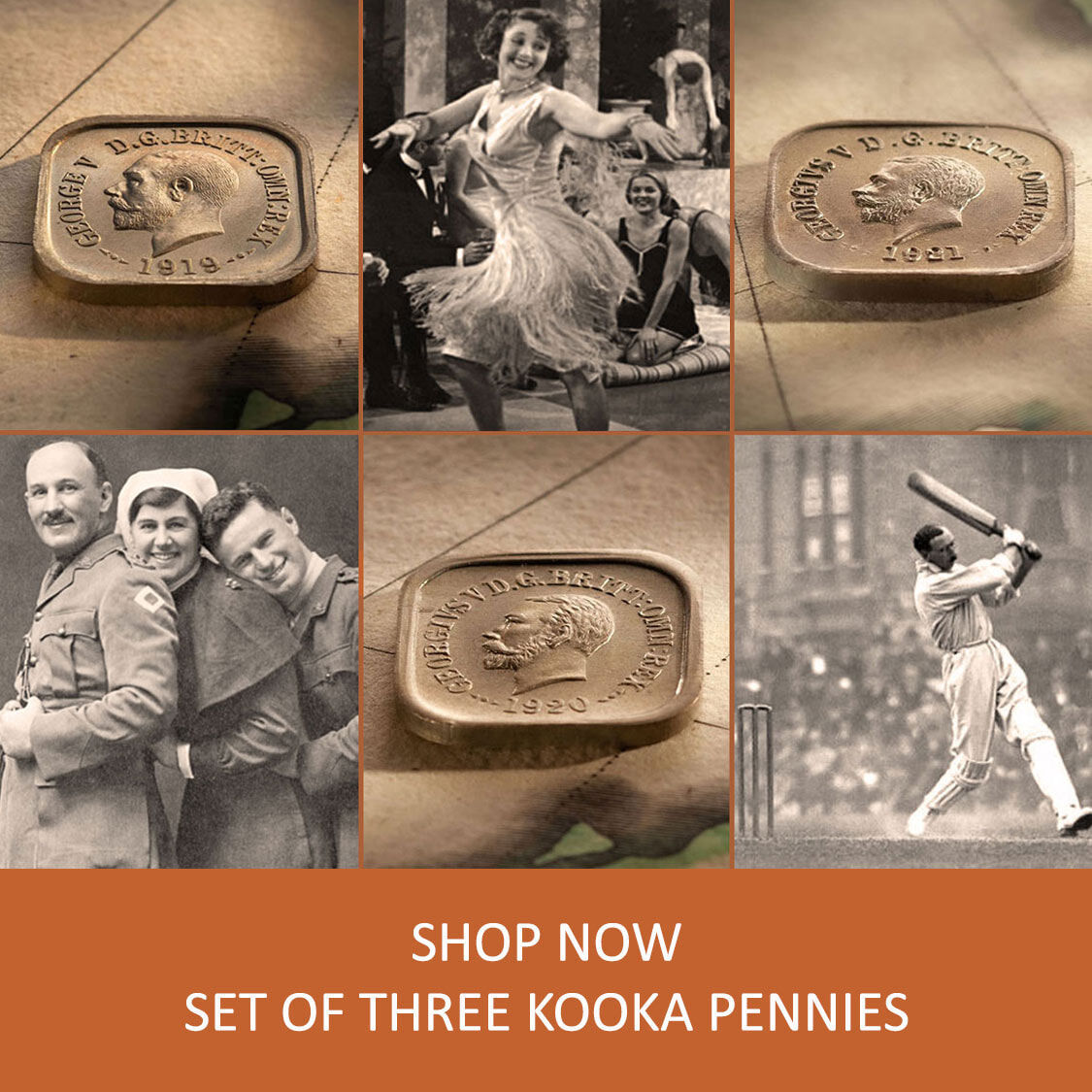 Buy a Three coin Date Set. A popular choice of acquiring a date set of Kookaburra Pennies. Three coins, one struck in 1919, 1920 and 1921. Your pick of design.