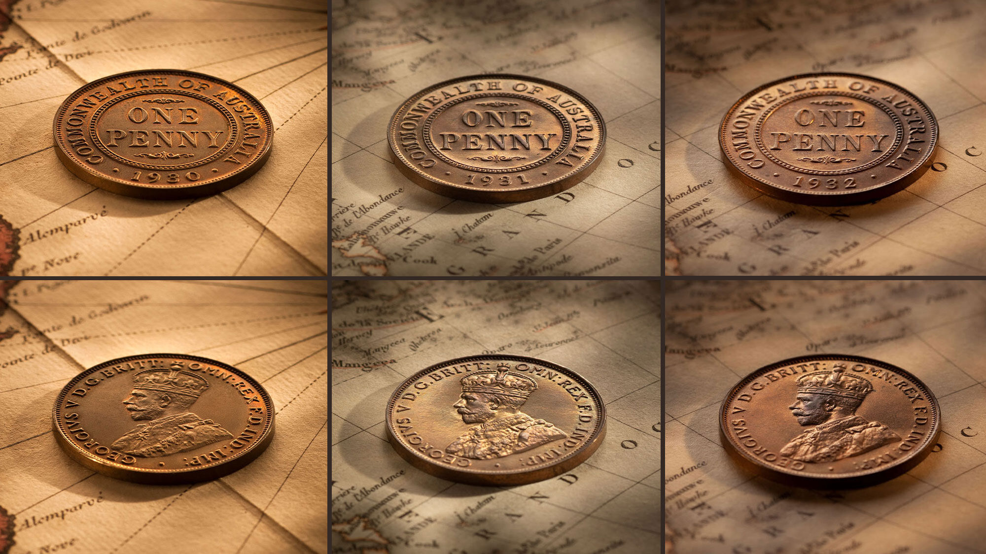 From left to right, the 'King' of Australian coin rarities, the Proof 1930 Penny. One of three available to collectors with a current value of $1.5 million.
