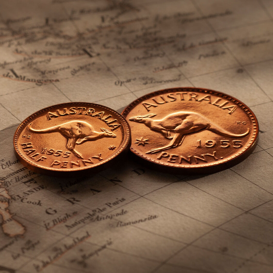 In an article published in the Journal of the Numismatic Association of Australia 2005, renowned numismatist Paul Holland contends that the Perth Mint proofs were created for unaided vision, the point here that a collector would not need an eye-glass to take in their beauty. Looking at this pair of 1955 proofs, you can only but agree!