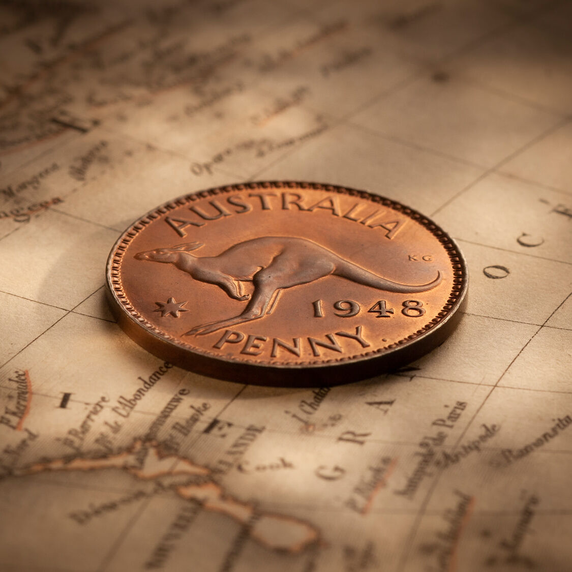 The onset of war created a window of opportunity and in 1940 the Perth Mint took up the reins for striking Australia’s circulating copper coins for the Commonwealth Government. The Perth Mint continued to strike copper coins until 1964, when two years later Australia converted to decimal currency.