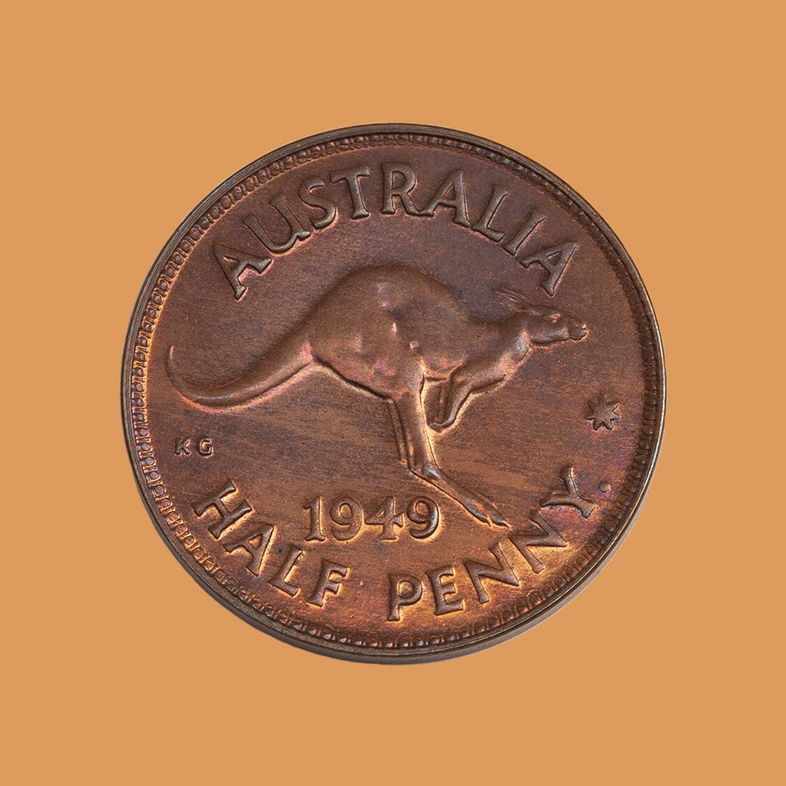 He found evidence that sixteen proof halfpennies were struck at the Perth Mint in 1949.