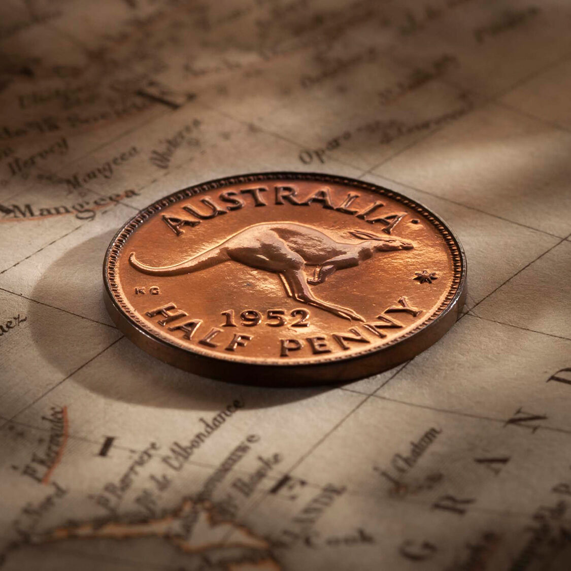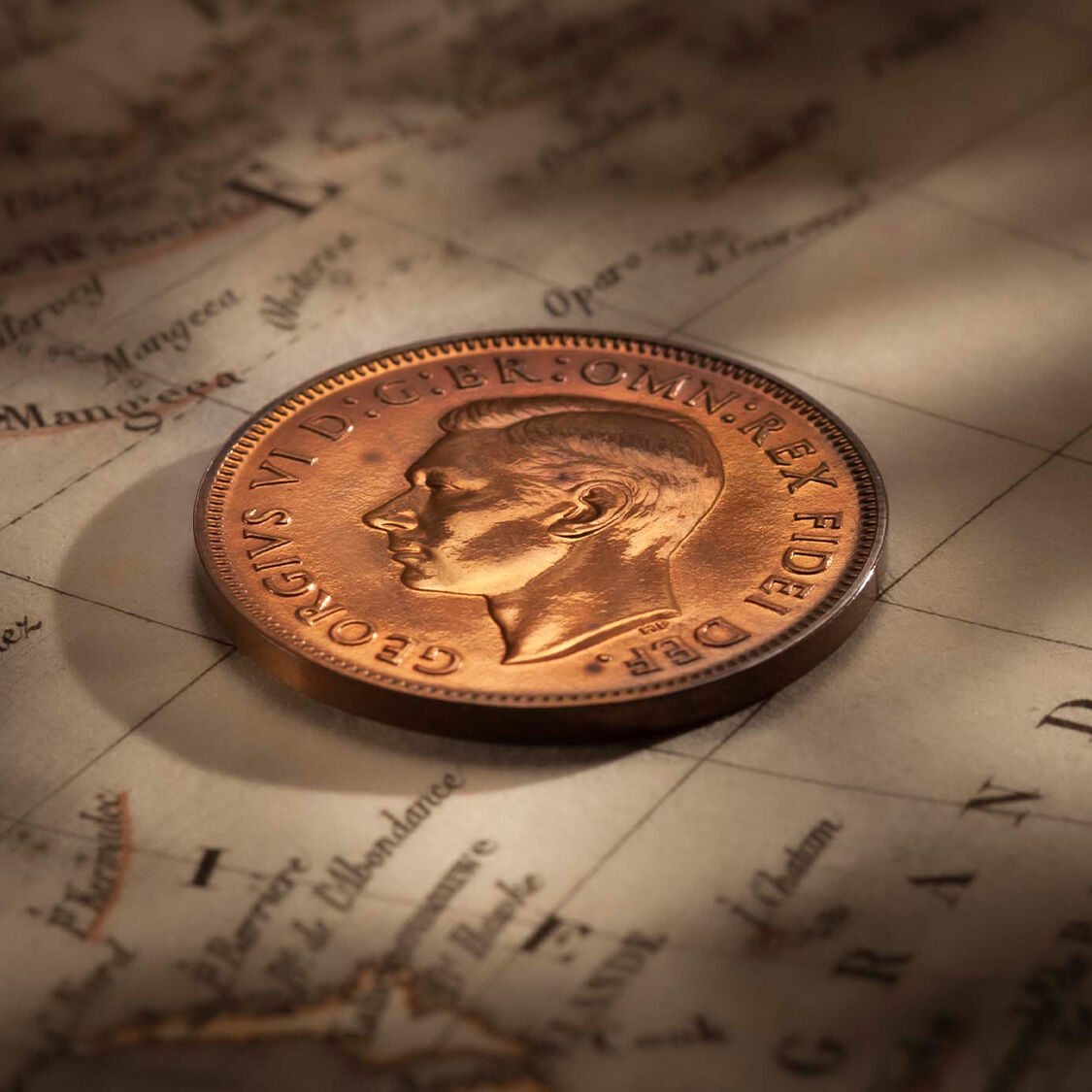 The onset of war created a window of opportunity and in 1940 the Perth Mint took up the reins for striking Australia’s circulating copper coins for the Commonwealth Government. The Perth Mint continued to strike copper coins until 1964, when two years later Australia converted to decimal currency.