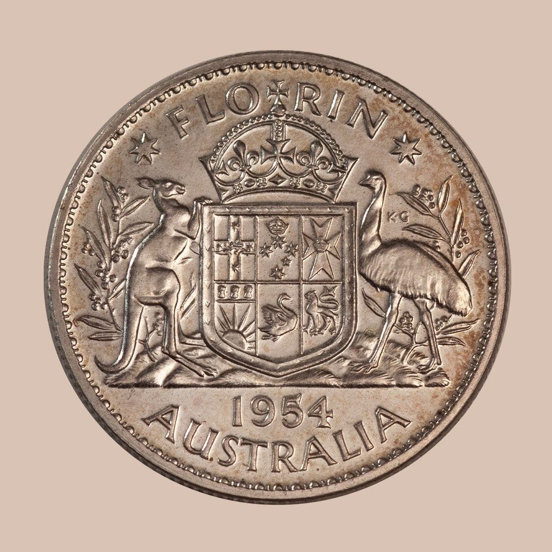 This Proof 1954 Florin was not struck for collectors as part of any mass-marketing sales campaign.