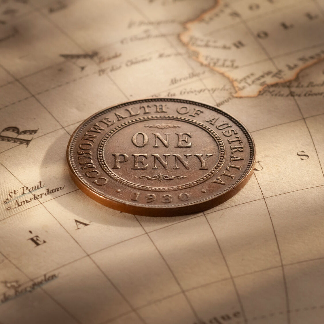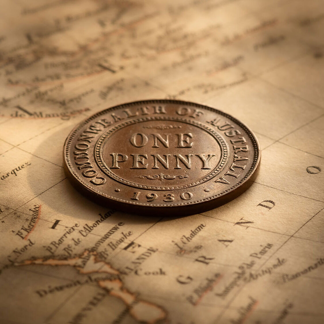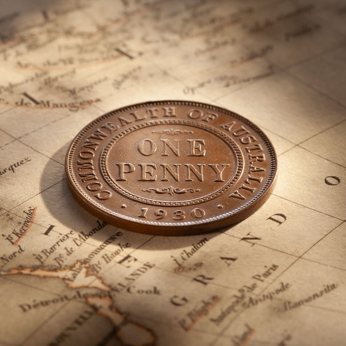 Commonwealth of Australia 1930 Penny, with an almost complete central diamond and six pearls