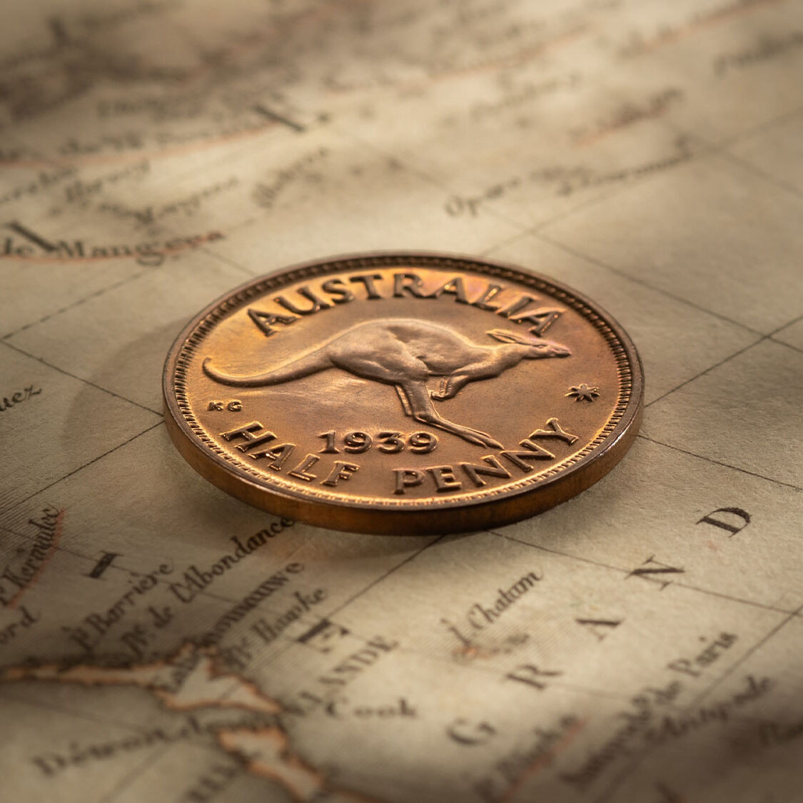 New coin designs are a source of great interest and excitement for collectors and that’s just one of the reasons why the Proof 1939 Halfpenny is keenly sought after. The Australian Government introduced a new design of the flying kangaroo to our halfpennies in 1939. Furthermore, the coin is scarce. The Melbourne Mint had originally intended to produce one hundred coins to sell to the public. The outbreak of World War II shattered the mint's dreams of commercialism, records indicating that none were sold. The infrequent sightings confirm that a minuscule number were produced and made their way into collector's hands, the suggested number forty. We estimate you would sight a Proof 1939 Halfpenny on the market every three to four years. One as glorious as this coin, once a decade.