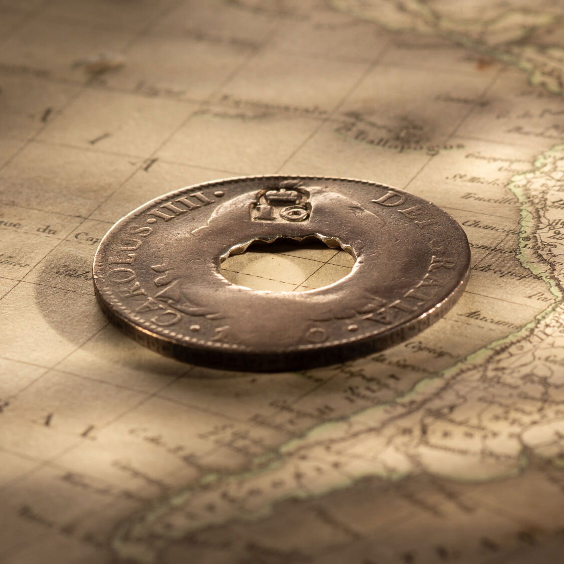 Extremely rare Holey Dollar, struck in the British Colony of Dominica