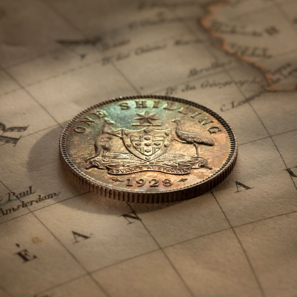 Ray Jewell was a foremost Australian collector and a highly respected professional, his involvement in the industry spanning more than three decades. He set the bar very high when it came to collecting proof coinage. A coin that was owned by Ray Jewell had to be rare and had to be top quality, traits that were duly acknowledged by the broader collector market whenever his coins came up at public auction. This Proof 1928 Shilling was a crowd-pleaser and a record breaker all along the way, selling in July 1993 for $11,000 on an estimate of $4000. And in the year 2000 selling for $22,540 on a pre-auction estimate of $15,000. In 2003, this numismatic gem was sold to the owner of the now famous Madrid Collection of Australian Rare Coins. The technical photographs confirm its glorious state.